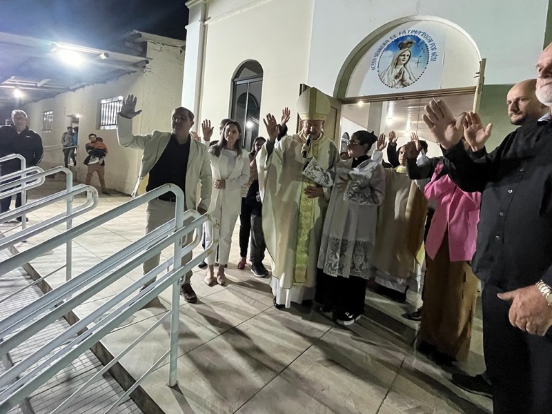 “Algo que nos preocupava aqui no Jaguarari era a drenagem. Por se tratar de um terreno íngreme e onde estão localizadas a escola, igreja e salão comunitário, demos uma atenção especial ao projeto, de modo a trazer segurança a todos, mas também embelezar este ponto público e central da comunidade”, explicou o prefeito Almides Roberg da Rosa, que descerrou a placa inaugural ao lado do bispo e demais lideranças municipais.