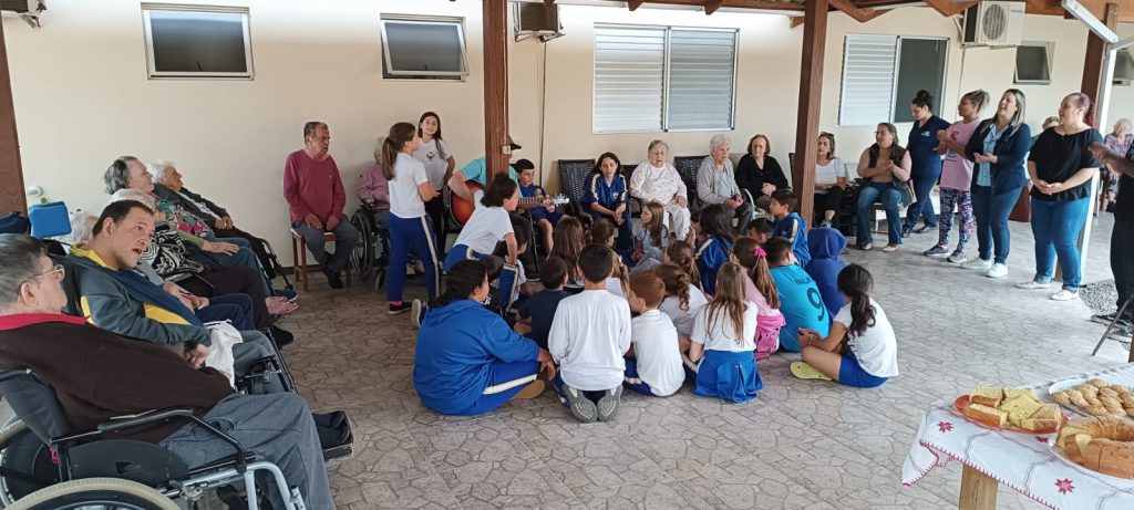 Uma tarde alegre e divertida, na presença dos vovôs e vovós que vivem na Casa de Repouso Santo Expedito de Meleiro, marcou a passagem do Dia internacional da pessoa idosa, transcorrido no último domingo, 01 de Outubro. A iniciativa da Secretaria de Ação Social, Serviço de Convivência e Fortalecimento de Vínculos, SCFV, do CRAS, foi muito bem recebida pela direção da casa e contou com atrativos como: danças, boa música ao vivo, com o músico Sérgio Zilli, bingo e um delicioso lanche. Para a Enfermeira responsável pelos idosos, Kely Isé, eles apreciam as visitas das crianças, que seguidamente comparecem.