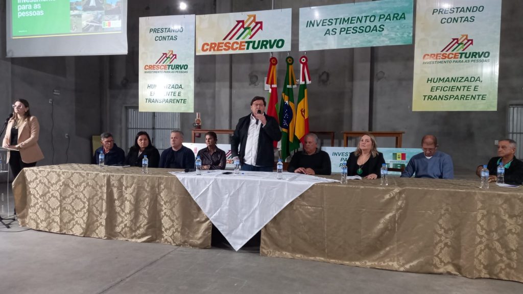 O prefeito de Turvo, Sandro Cirimbelli (PP), fez a primeira prestação de contas do mandato na comunidade São Luiz, de uma série de reuniões. O que foi destaque na reunião: a presença expressiva de moradores; o protagonismo do prefeito, que teve a missão de responder às perguntas da comunidade. O modelo não foi feito por acaso. Cirimbelli contratou o publicitário Jairton Manique Barreto, de Criciúma, para fazer assessoramento em eventos e das redes sociais.