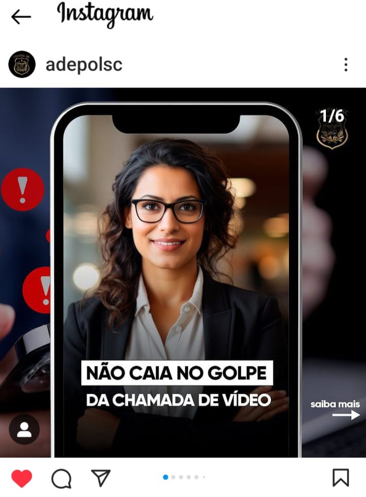 A Polícia Civil divulga nota sobre novo golpe que está na praça: o golpe da chamada de vídeo. No Instagram da Adepol os detalhes sobre a atuação dos criminosos, que pegam as vítimas pelos olhos: