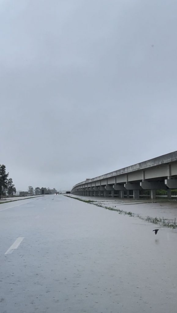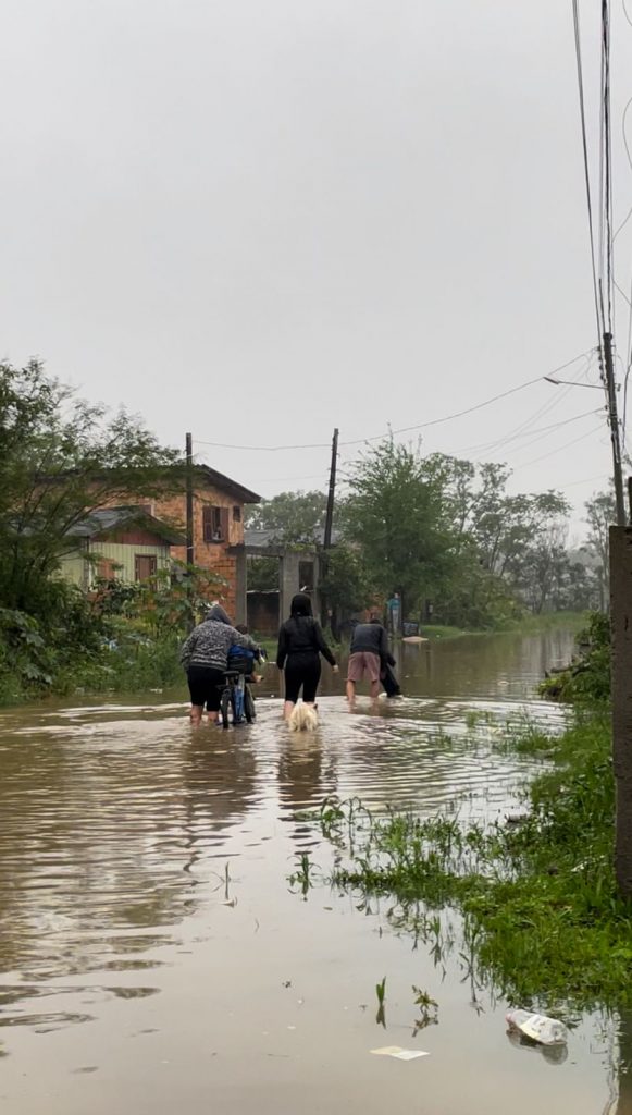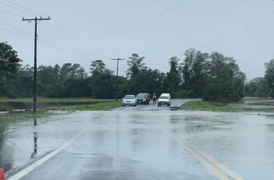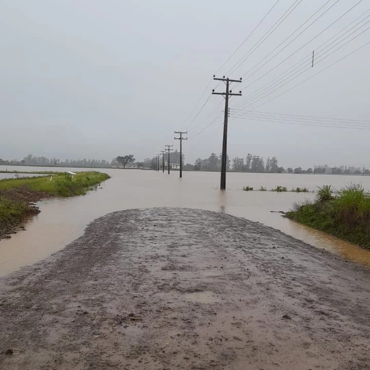Domingo, os rios, fora dos leitos, atingiram as canchas de arroz, que transbordaram para as estradas municipais.