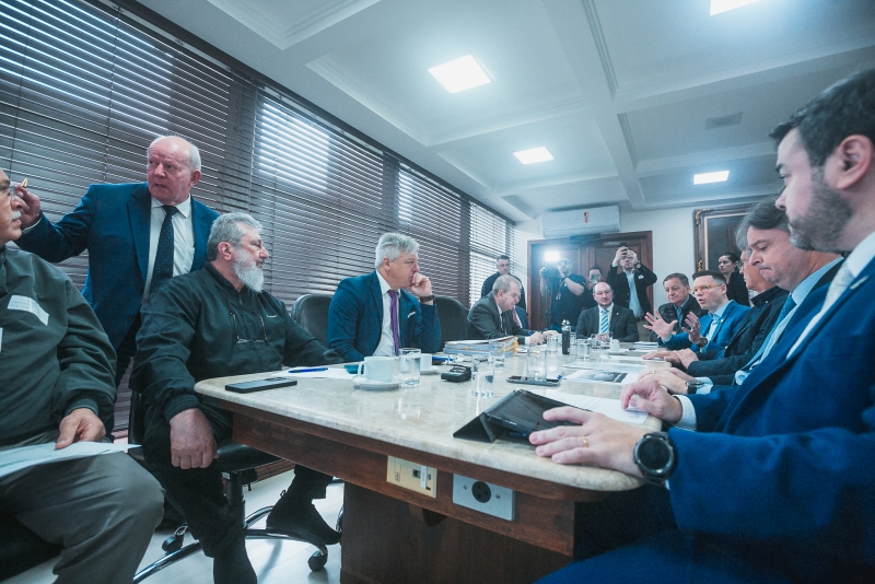 Os deputados que integram a Bancada do Oeste na Assembleia Legislativa se reuniram para ouvir os encaminhamentos realizados pelo governo do Estado referente a três pleitos do colegiado: ampliação da rede de internet rural, apoio aos produtores de leite e expansão do número de voos de passageiros entre as cidades catarinenses. Além dos secretário de Estado, Marcelo Fett, Valdir Colatto e Cleverson Siewert, também estiveram presentes na reunião os deputados Mauro de Nadal (MDB), que preside a Alesc, Fabiano da Luz (PT), Maurício Eskudlark (PL), Padre Pedro Baldissera (PT), Altair Silva (PP), Neodi Saretta (PT); o secretário de Estado da Casa Civil, Estêner Soratto; e o presidente da Celesc, Tarcísio Rosa.