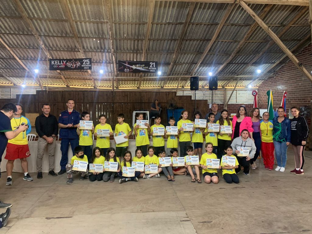 Na cerimônia de encerramento, antes do banho de mangueira, compareceram ao ato o prefeito Everaldo dos Santos, Kekinha, comandante do Corpo de Bombeiros de Sombrio, Capitão Ricardo Cavaler Bianchi , secretária de educação, Thais Valandro Martins Borges e vereador Jaison Leal Pereira. Os alunos foram contemplados com camiseta personalizada, boné e bolsa de praia.