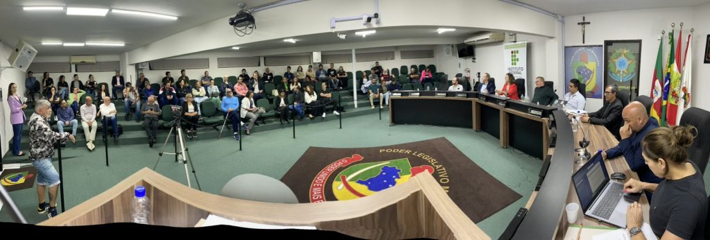 Há pouco mais de um mês, no dia 26 de setembro, aconteceu uma Audiência Pública nas dependências da Câmara de Vereadores organizada pelo IFC Campus Avançado Sombrio. Naquela ocasião se fizeram presente a reitora do Instituto Federal Catarinense, professora Sônia Regina de Souza Fernandes, o representante do IFC Campus Santa Rosa do Sul, diretor executivo Cristiano Antônio, o diretor do Campus Avançado Sombrio, Victor Martins, representantes políticos municipais e região, além do deputado federal Pedro Uczai (PT).