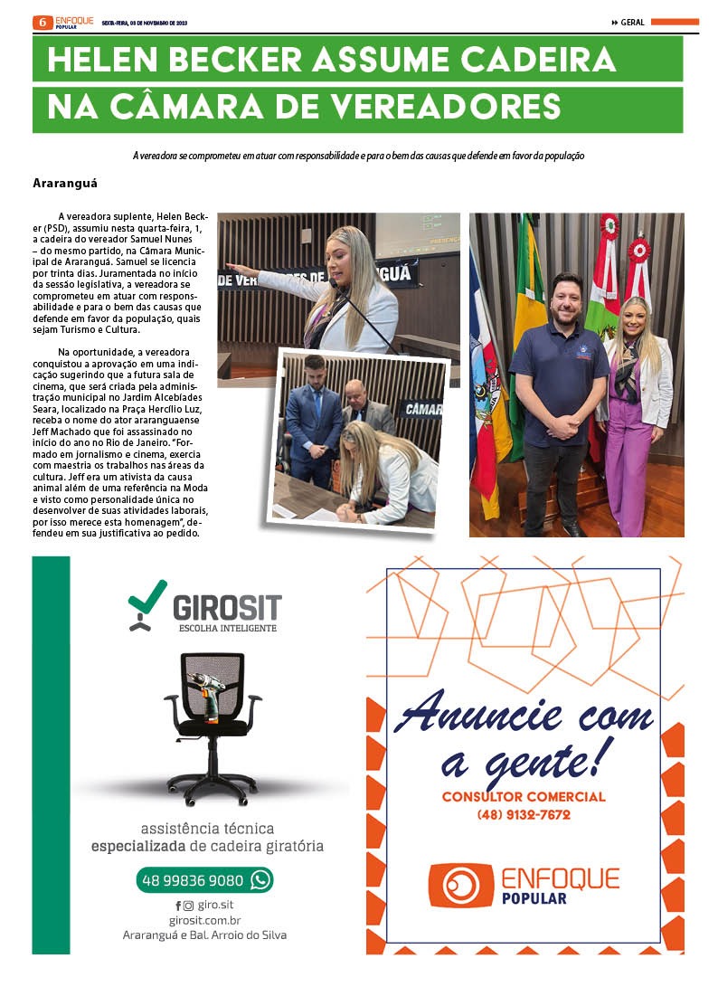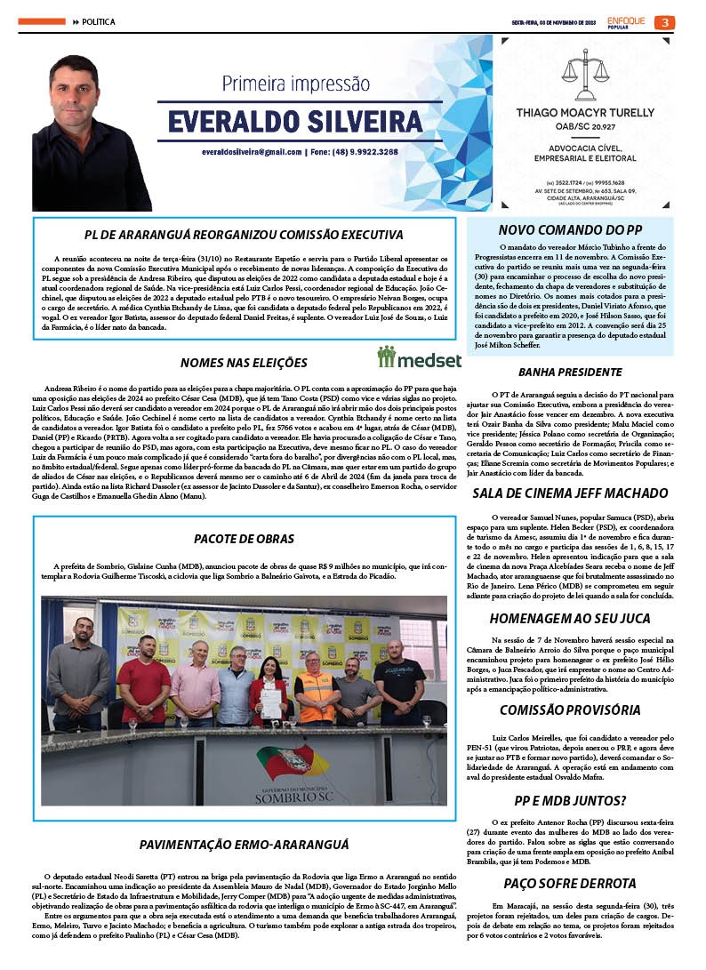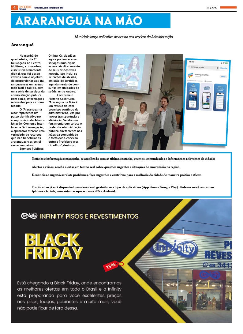Jornal Enfoque Popular – Ed. 2736 – 03/11/2023 – Capa: Araranguá lança aplicativo próprio