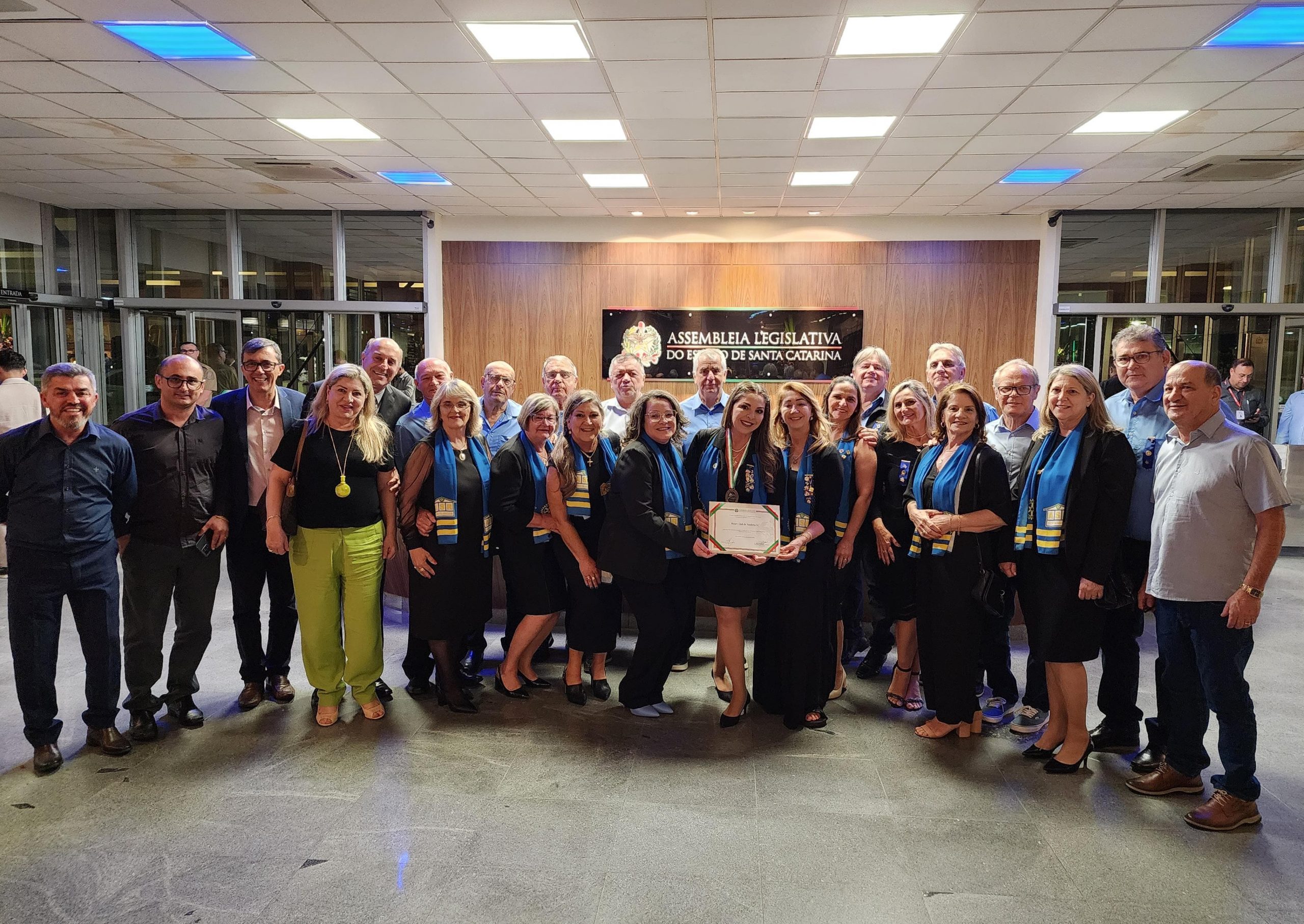 “É com imensa gratidão e humildade que recebemos esta honraria da Assembleia Legislativa Catarinense, através do estimado companheiro rotariano e dedicado deputado Zé Milton. Em nome de nosso clube, com muita alegria que compartilho esse reconhecimento, fruto do comprometimento e esforço dedicados aos trabalhos sociais em nosso amado município de Sombrio. Celebramos com especial orgulho os 30 anos de apadrinhamento ao Lar do Idoso São José, uma jornada de solidariedade e carinho que nos enche de realizações. Muito obrigado!”, declarou Jussara.