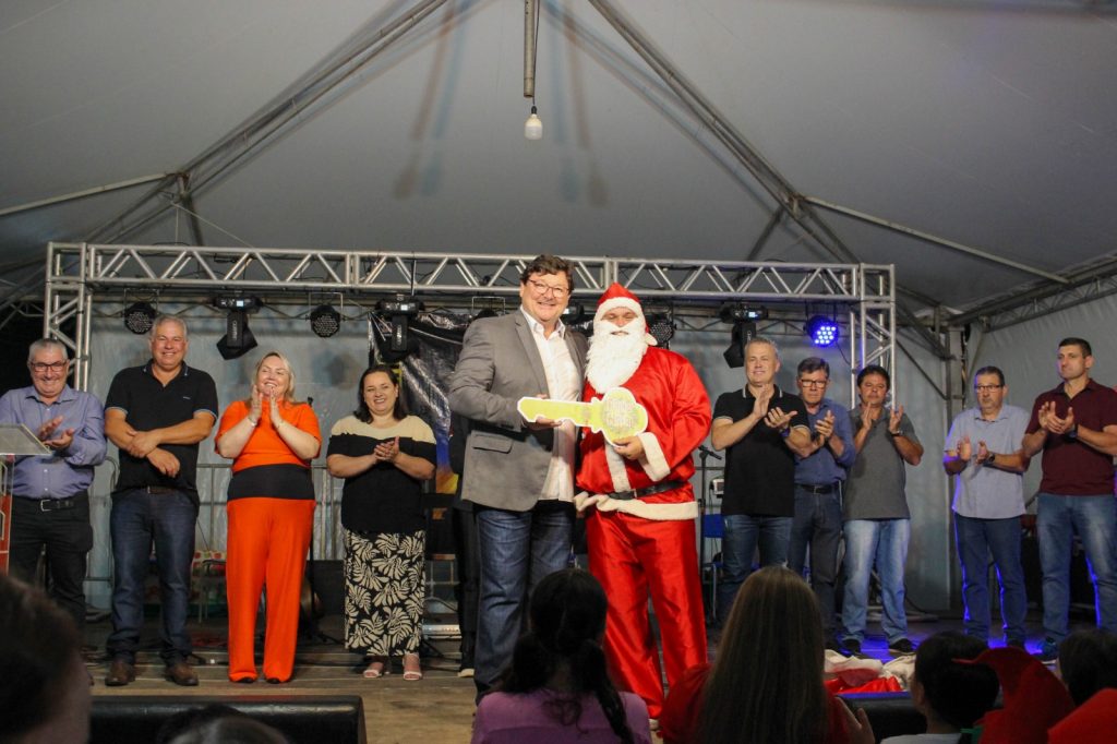 Em um gesto simbólico, o prefeito entregou a chave da cidade, simbolizando a abertura oficial das celebrações natalinas em Turvo.
