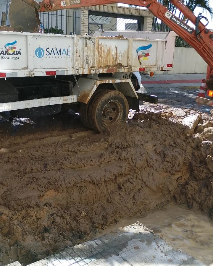 Nesta terça-feira, uma equipe operacional do Serviço Autônomo Municipal de Água e Esgoto (SAMAE) está em ação para realizar reparos em uma tubulação de água localizada na Rua Prefeito Walter Belinzoni, próxima ao Auto Posto Danielli, no Bairro Cidade Alta.