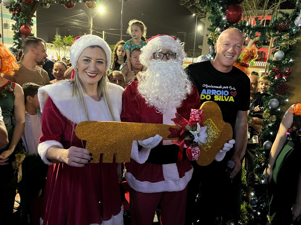Além das crianças e famílias, o prefeito Evandro Scaini recepcionou o Papai Noel e entregou a chave da cidade para o casal.