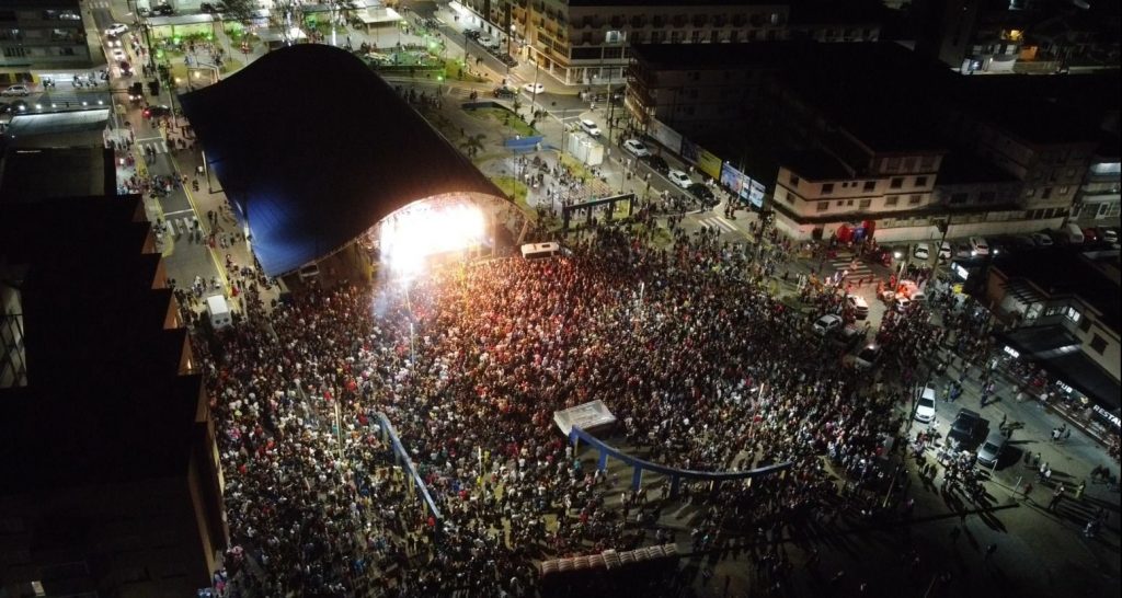 Além da inauguração, um ato foi realizado no palco central com direito a “parabéns para você” e fogos de artifício. O ponto alto da noite foi, ainda, o show nacional com Guilherme e Santiago que atraiu uma multidão na área central.