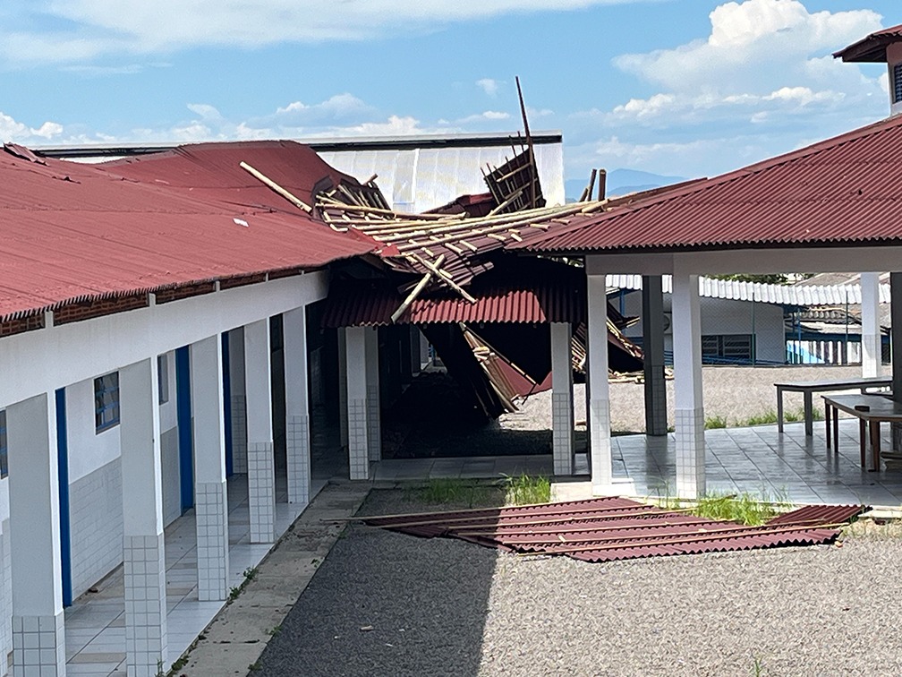 Fortes ventos registrados na tarde deste domingo arrancaram telhado de outras salas de aula em bloco que estava sendo reconstruído