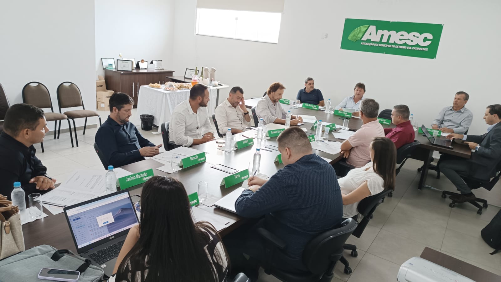 Os prefeitos da AMESC (Associação dos Municípios do Extremo Sul Catarinense) estiveram reunidos para assembleia ordinária de fevereiro na sede da associação. Na pauta foram abordados temas como capacitação integrada, social e alteração do estatuto da entidade. O encontro aconteceu na manhã desta quarta-feira (28).