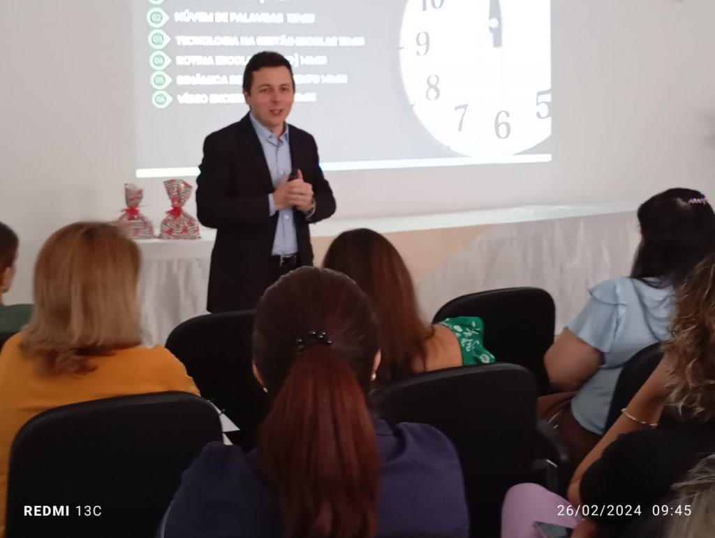 Todos os diretores de escola e coordenadores dos Centros de Educação Infantil (CEI’s) da Rede Pública Municipal de Ensino de Araranguá participaram, nesta segunda-feira, do 1º encontro formativo ministrado pelo professor Francisco Herbert Lima Vasconcelos, docente da Universidade Federal do Ceará, graduado em Física, mestrado com pesquisas em Tecnologia Aplicada à Educação e doutorado em Teleinformática, além de secretário de Educação da cidade de Sobral/CE.