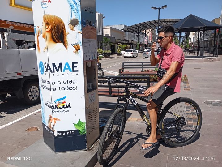 Durante essas incursões, ele mantém o hábito de se hidratar, bebendo água gelada proveniente do smart totem instalado no Calçadão da Avenida Getúlio Vargas, resultado de uma parceria entre o SAMAE e a Prefeitura de Araranguá.