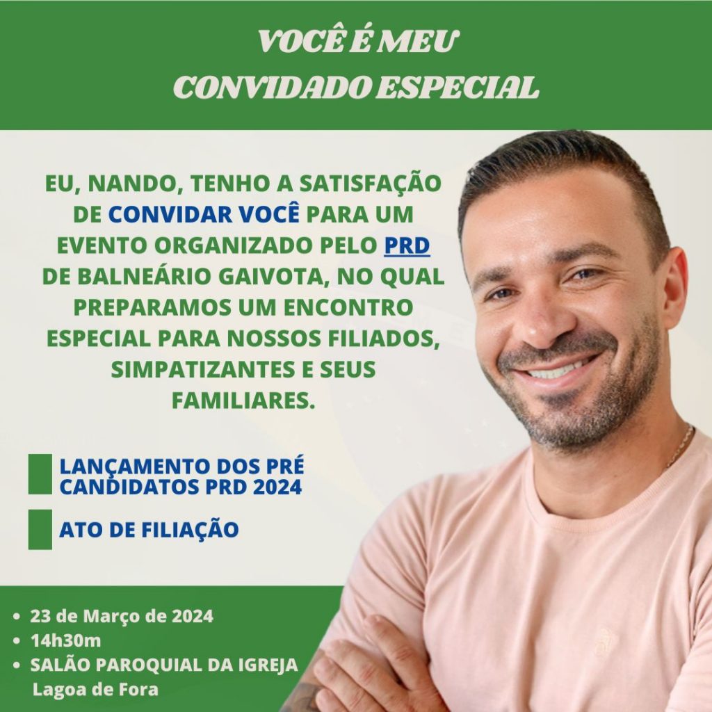 Em Araranguá, as filiações de Jorginho (ex PP) e Zico (ex Avante) acontecem na quarta-feira (20). O local ainda não foi anunciado.
