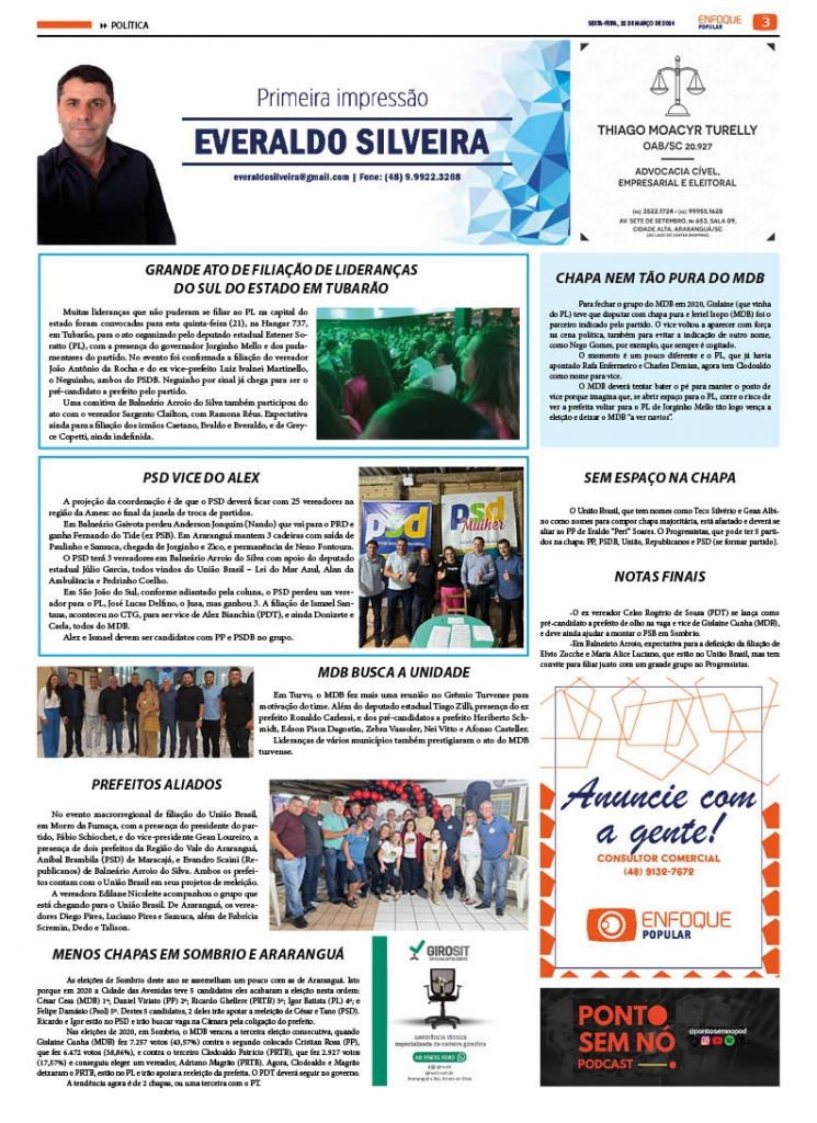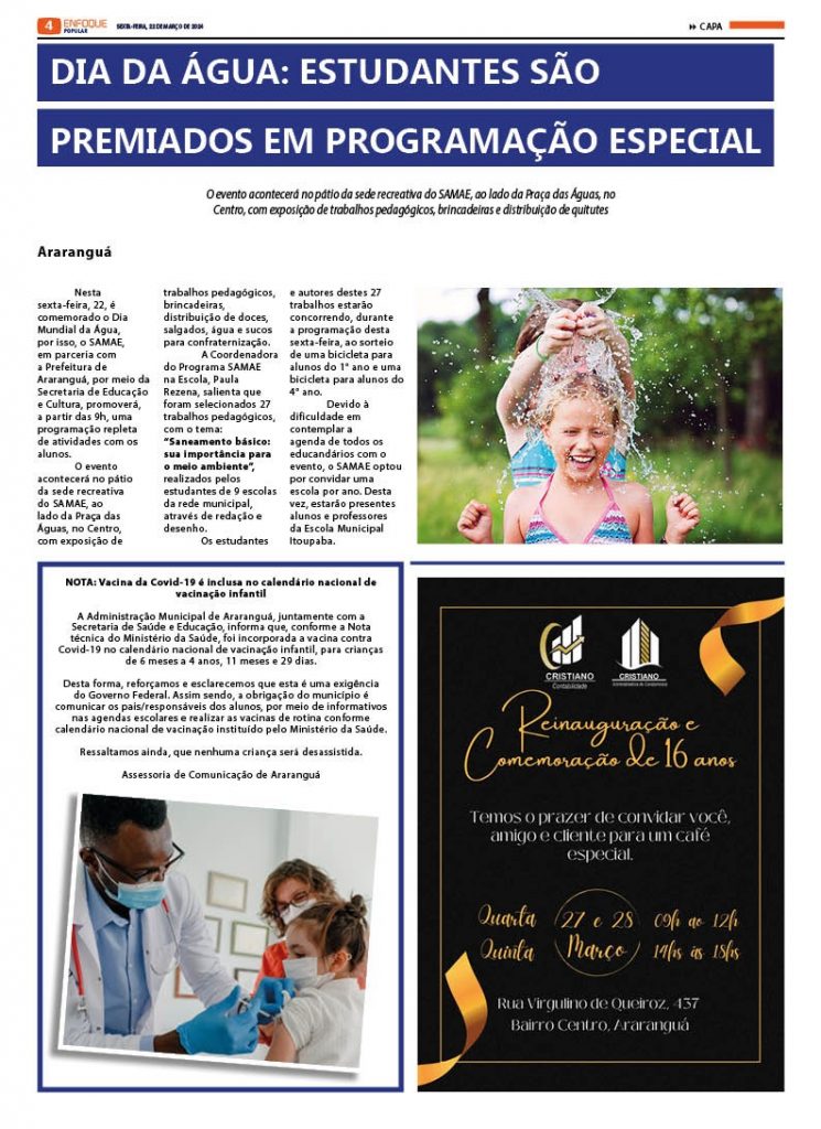 Jornal Enfoque Popular – Ed. 2753 – 22/03/2024 – 22 de Março: Água nossa de cada dia