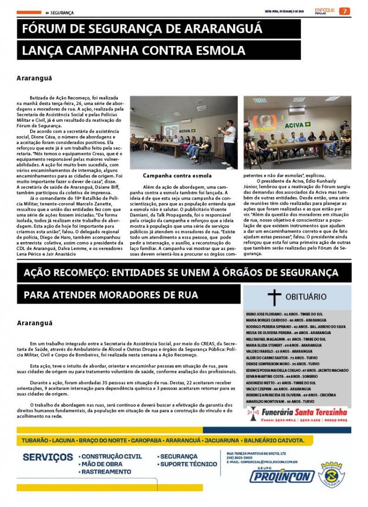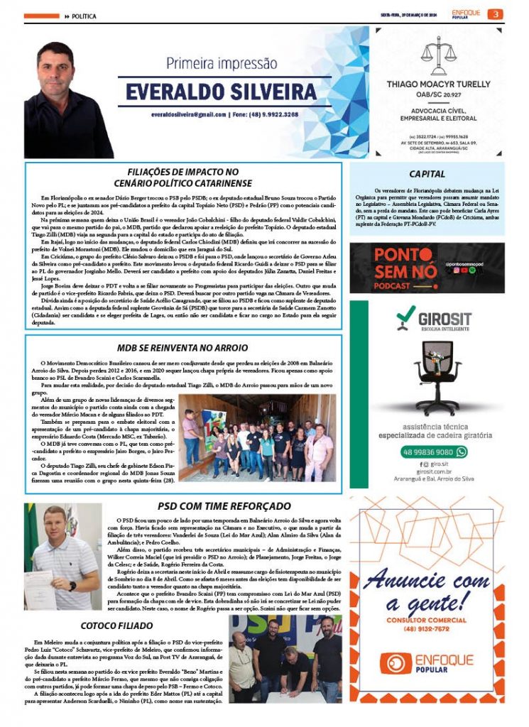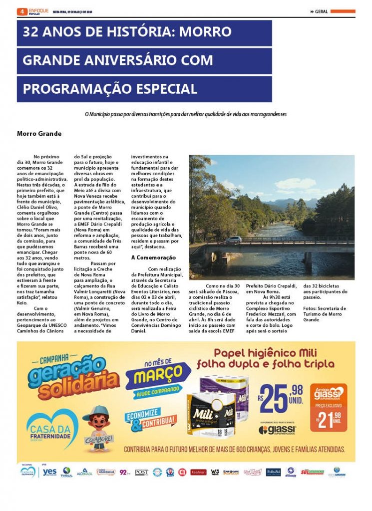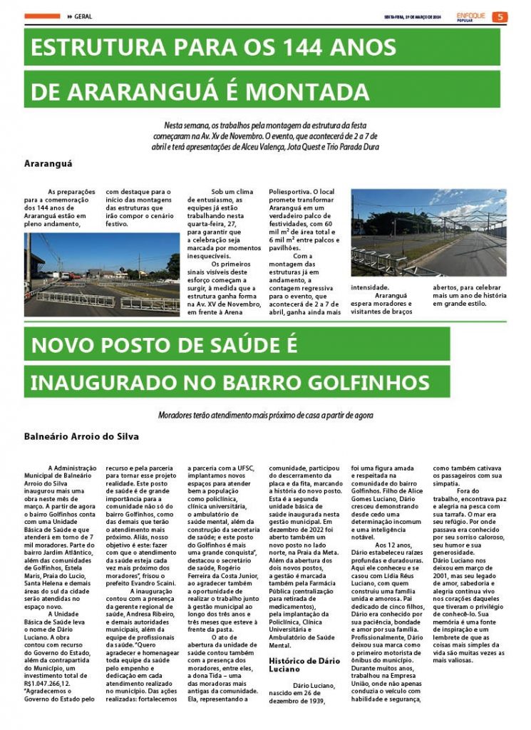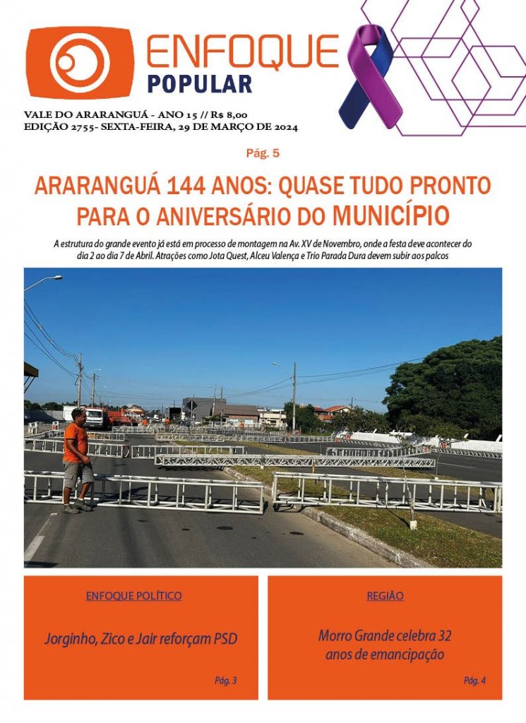 Edição 2755 – Capa: Araranguá 144 anos e Morro Grande 32 anos – 29/03/2024