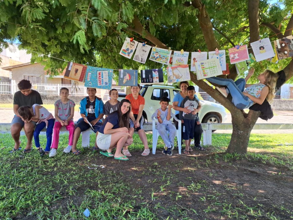 Nesse evento, foi criado um ambiente lúdico e educativo, com o intuito de estimular o interesse pela leitura e promover o desenvolvimento cognitivo e emocional dos participantes. Além da realização de atividades como leitura em grupo e contação de histórias, foram incluídas brincadeiras e a confecção de marcadores de páginas utilizando elementos naturais, o que enriqueceu a experiência e proporcionou momentos de aprendizado e diversão ao ar livre.