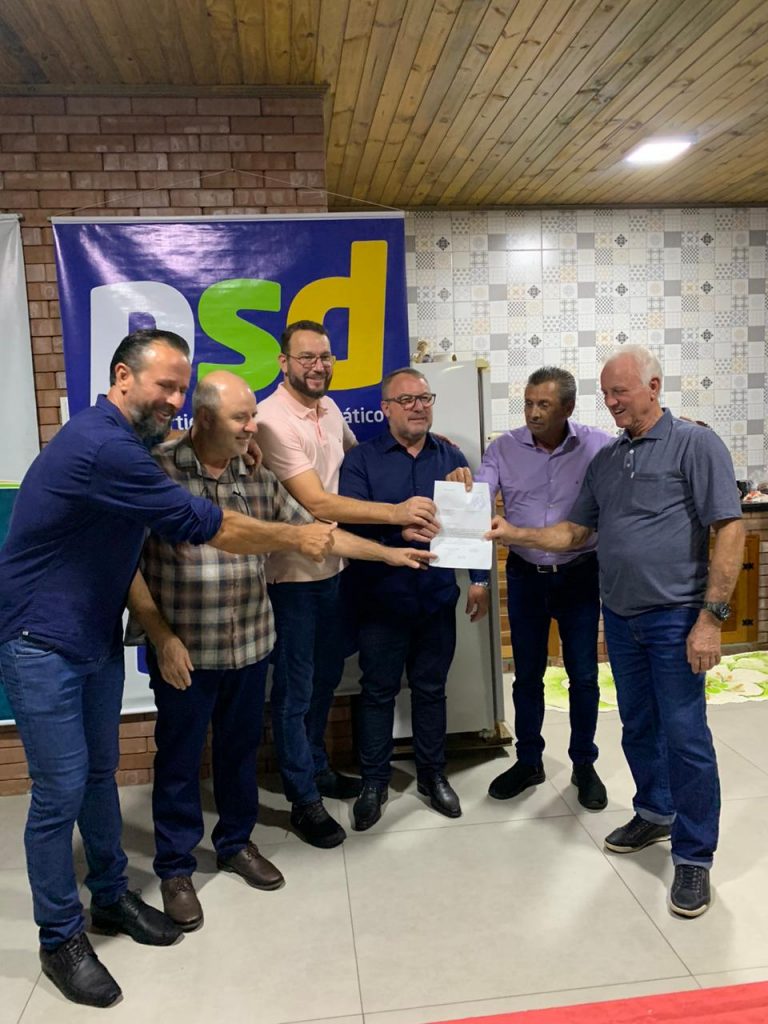 O presidente municipal Everaldo Martins, o Beno, ao lado do pré-candidato a prefeito Márcio Fermo, e do deputado estadual Júlio Garcia, apresentou uma nominata com partido que já tem 12 a 13 nomes: Silvana, Auelica, Gabriele Fermo, Camila, Elen, Dado, Adicione, Samaroni Schuvartz, Agenor (Noia), Mário, Antônio, Irio e o Joélcio Fernandes (suplente de vereador). Uma curiosidade no time do PSD é que uma pré-candidata, Gabriele, é deficiente visual.