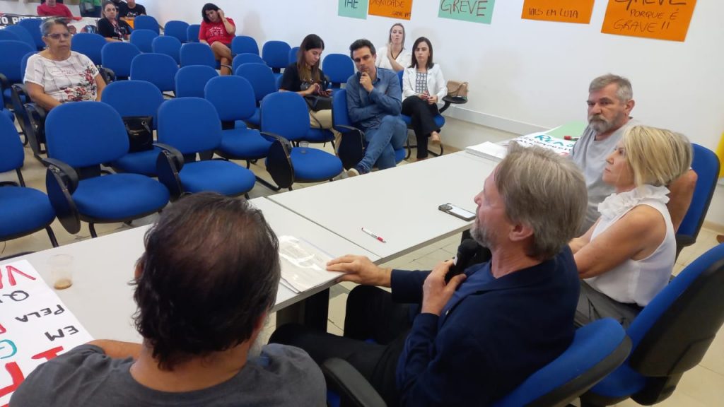 Em um dos momentos mais ásperos da agenda o deputado teve que ouvir os questionamentos dos Técnicos Administrativos em Educação do IFSC – TAES.