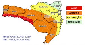Alerta Meteorológico: SC tem previsão de temporais com chuva intensa e volumosa entre quinta e sexta-feira