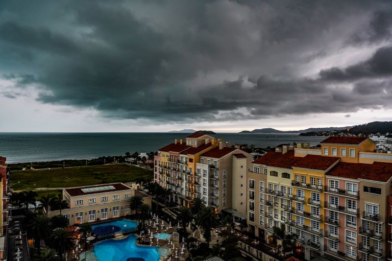 De acordo com a Defesa Civil de Santa Catarina, nesta quinta-feira, 9, a influência de uma frente fria, que ao longo do dia ganha características estacionárias, segue favorecendo a formação de instabilidades por todo estado, mantendo o tempo nublado com condições para chuva e temporais isolados a qualquer hora do dia. Com o tempo mais nublado, as temperaturas máximas marcam valores abaixo de 20°C no Litoral Sul, entre 20 e 24°C no Grande Oeste e demais regiões litorâneas, e de 24 a 27°C em trechos do Vale do Itajaí e Planalto Norte. Ondulação de sul/sudeste entre 1,5 e 2,3 m.