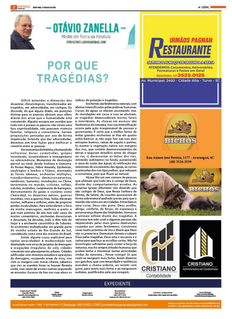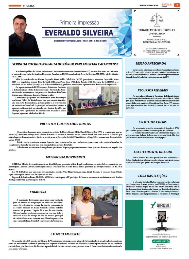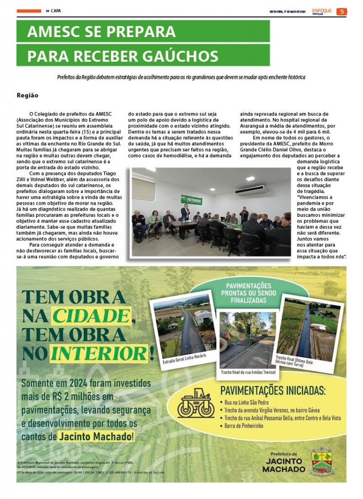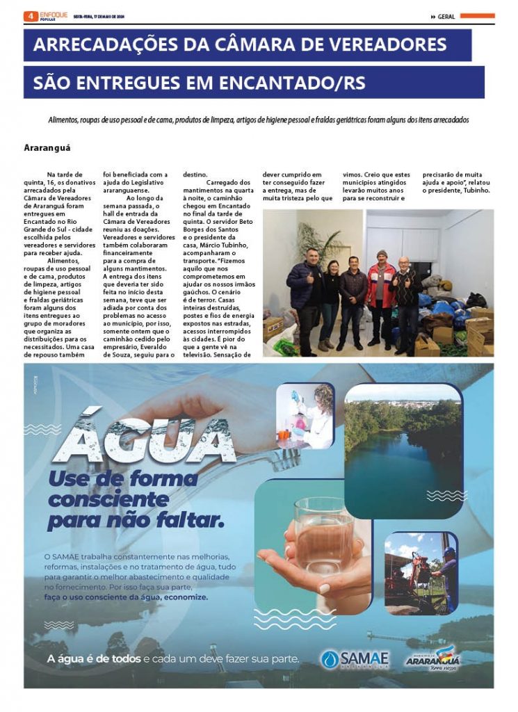 Jornal Enfoque Popular – Edição 2762 – 17-05-2024 – Segue a preocupação com as cheias e seus efeitos