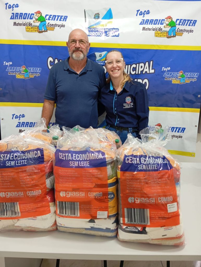 O Campeonato Municipal Balneário Arroio do Silva 2024 – taça Arroio Center – arrecadou 12 cestas básicas que foram doadas pelos presidentes dos dez times que vão disputar o campeonato.