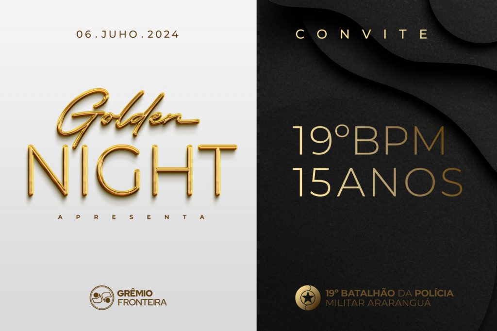 O baile de gala Golden Niight, promovido pelo Grêmio Fronteira, prestará uma homenagem aos 15 anos do Batalhão da Polícia Militar em Araranguá. O evento trará ao salão nobre do clube uma noite de gastronomia refinada e boa música, proporcionando a sociedade local uma experiência diferenciada. As mesas para o evento, que será realizado no dia 06 de julho, estão sendo comercializadas tanto na secretaria do clube quanto na sede do Batalhão de Polícia.