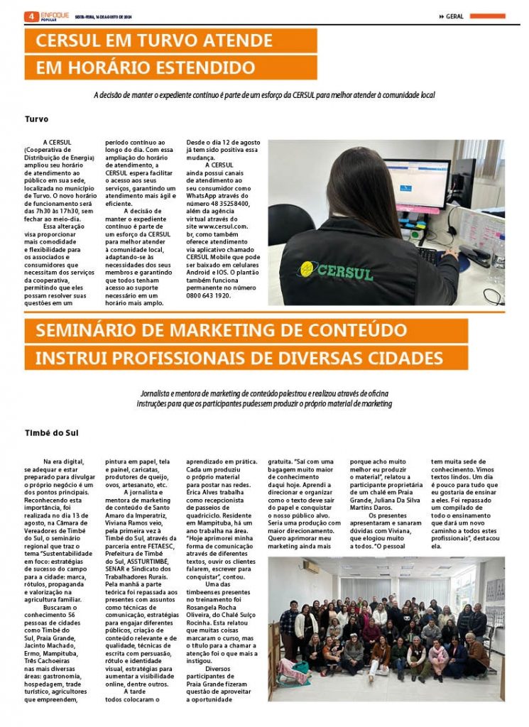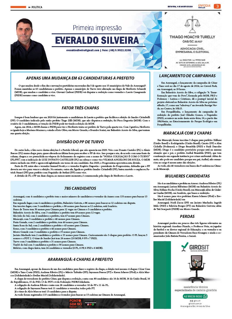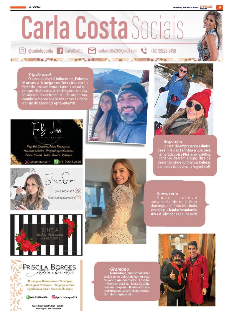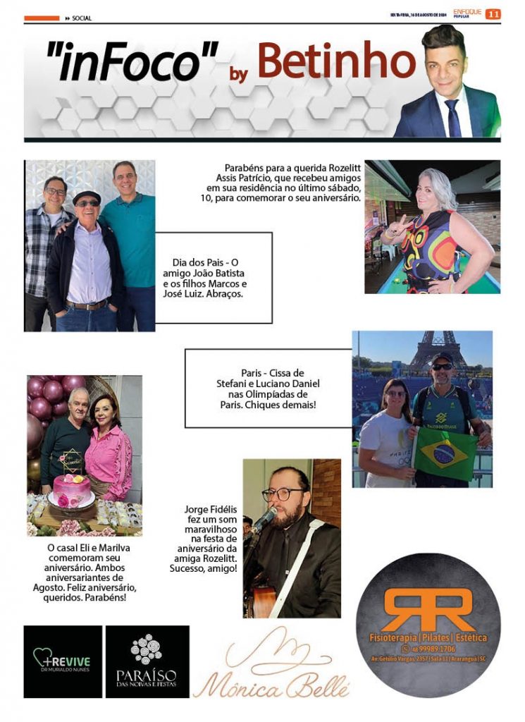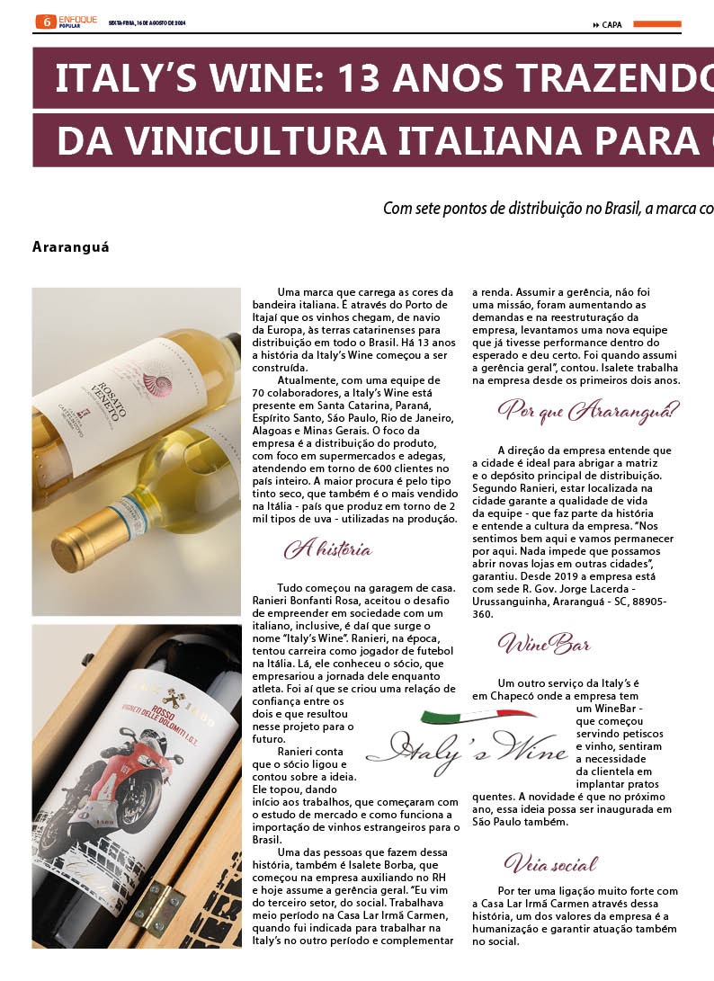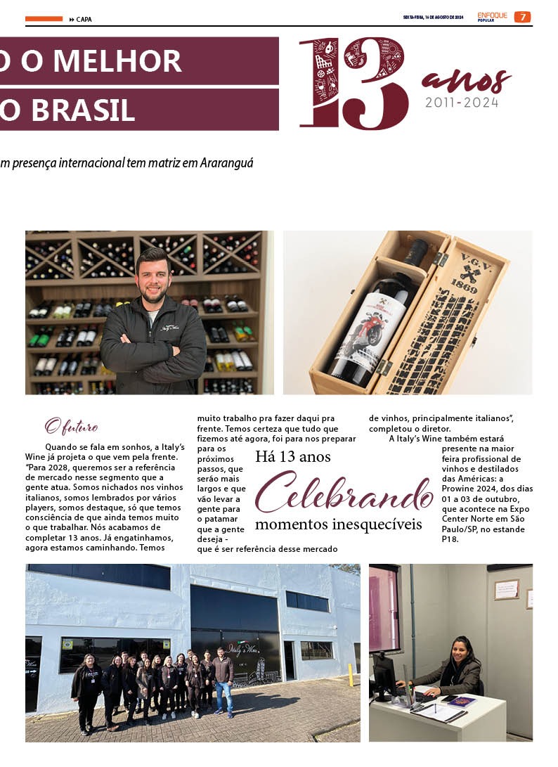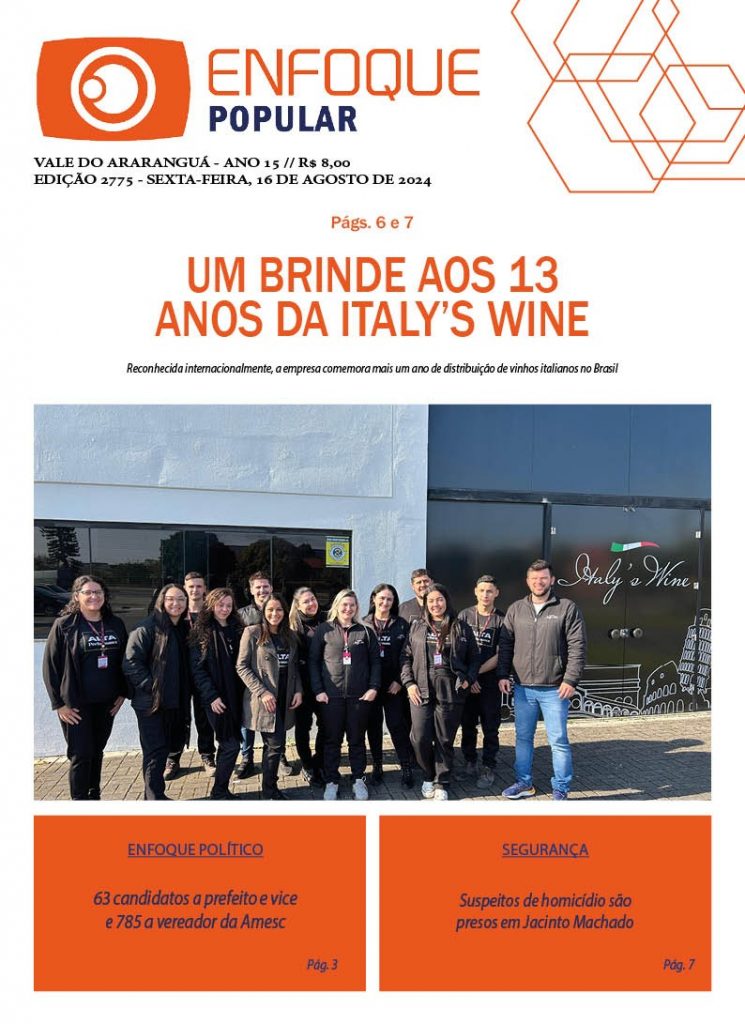 Jornal Enfoque Popular – Edição 2774 – 16/08/2024 – Um brinde aos 13 anos da Italy’s Wine