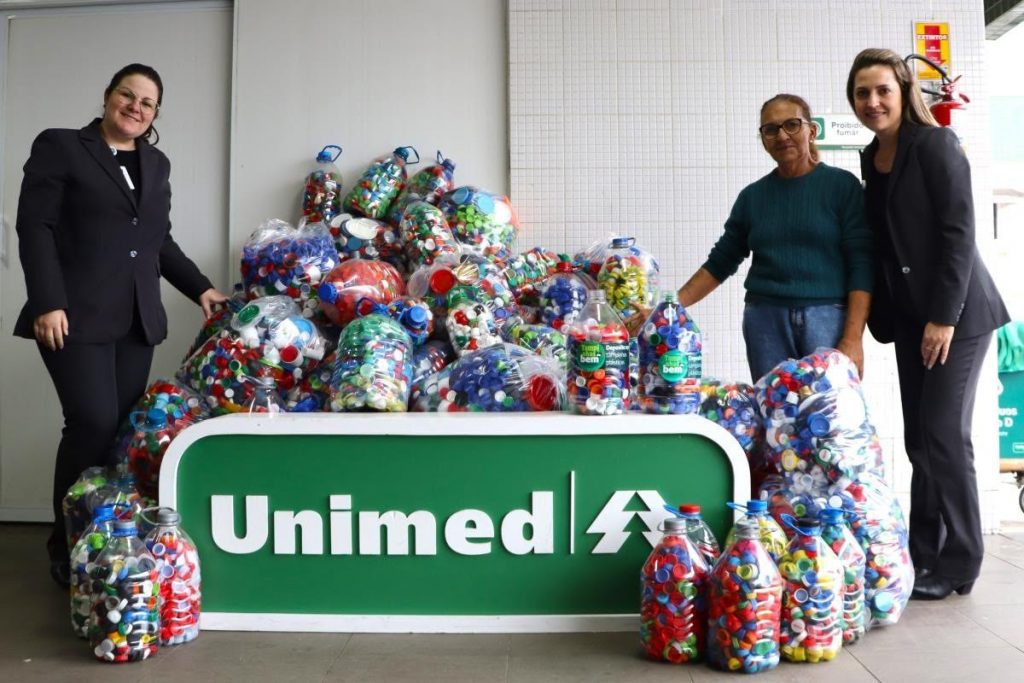 O Grupo Unimed Criciúma continua arrecadando tampinhas plásticas ao longo do ano para apoiar instituições filantrópicas. Além disso, também são coletados lacres de alumínio, que serão trocados por cadeiras de rodas.