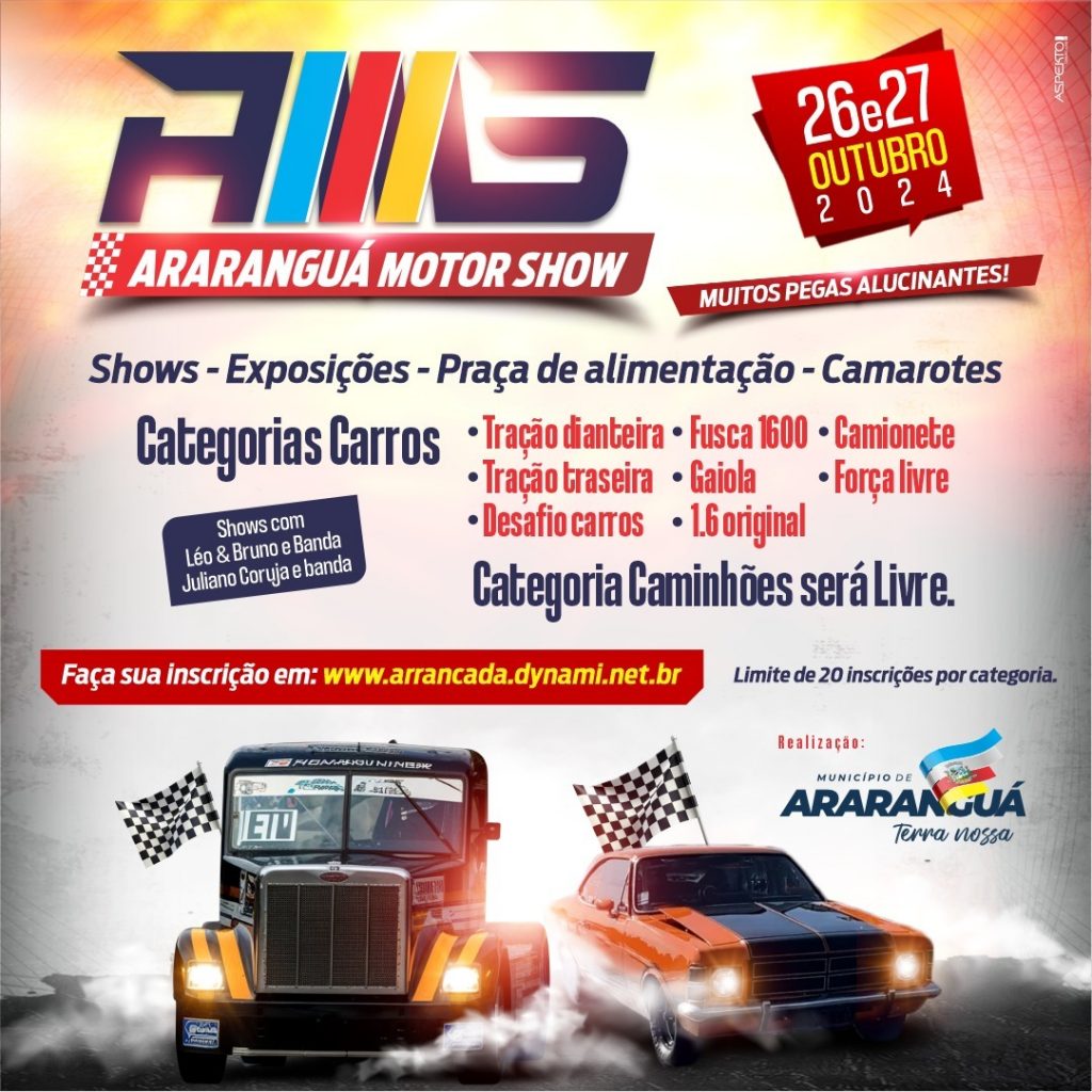 Com atividades voltadas a todos os públicos, o evento contará com competições de corrida automotiva, incluindo carros e caminhões, proporcionando aos espectadores uma experiência de adrenalina e emoção. Além das competições, o Araranguá Motor Show será palco de exposições de veículos, praça de alimentação com variadas opções gastronômicas e shows musicais que completarão a atmosfera de festa e diversão.