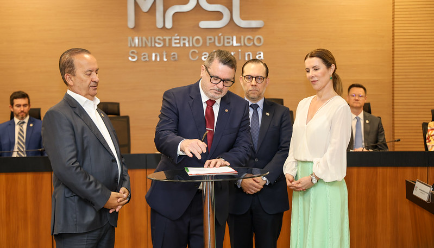 O ato de assinatura do termo de cooperação ocorreu na presença do Colégio de Procuradores do MPSC. Estiveram presentes na mesa principal de autoridades o Subprocurador-Geral de Justiça para Assuntos Institucionais do MPSC, Paulo Antonio Locatelli; o Corregedor-Geral do MPSC, Fábio Strecker Schmitt; o Secretário de Estado da Casa Civil, Marcelo Mendes; Secretário de Estado da Fazenda, Cleverson Siewert; e a Ouvidora do MPSC, Rosemary Machado Silva.