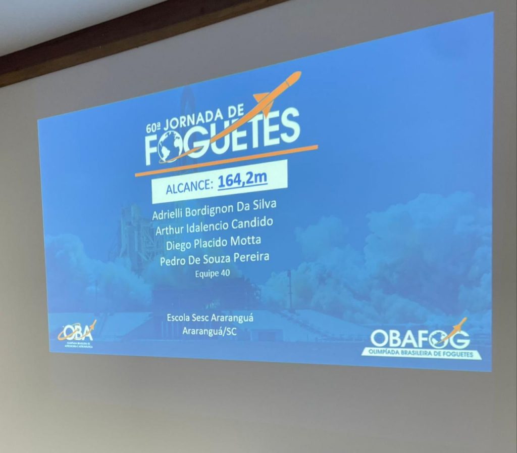 Além de participarem da etapa nacional da Olimpíada Brasileira de Astronomia e Astronáutica (OBA), os estudantes do Ensino Fundamental da Escola Sesc Araranguá marcaram presença na Mostra Brasileira de Foguetes (MOBFOG), realizada no Rio de Janeiro de 28 a 31 de OUTUBRO.