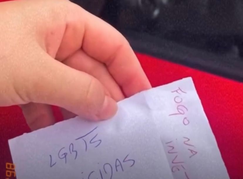 Na manhã desta terça-feira (19/11), uma mulher bissexual encontrou um bilhete homofóbico preso ao limpador de para-brisa do carro, estacionado no Centro de Araranguá. O papel continha frases como “LGBTs homicidas” e “fogo nos invejosos”. O ataque ocorreu entre 8h30 e 11h, quando ela retornou ao veículo e registrou o ocorrido com fotos e vídeos.