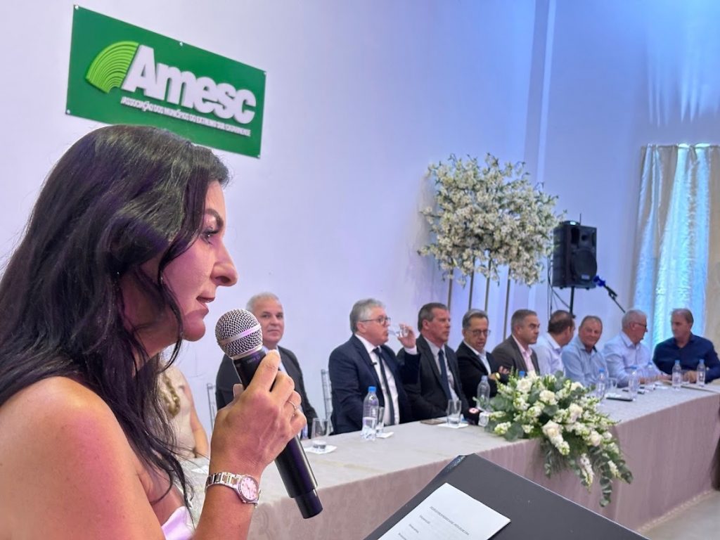 A presidente ainda lembrou o marco de ser a segunda mulher a presidir a AMESC, sucedendo a ex-prefeita de Santa Rosa do Sul, Geci Geltrudes. Lembrou da responsabilidade que possui e pontuou que a missão continua clara em fortalecer ainda mais os municípios da região, buscando desenvolvimento econômico, social e estrutural. Ressaltou a importância de união dos prefeitos e que a presidência não é apenas sua, mas sim de todos os prefeitos que compõem a AMESC.
