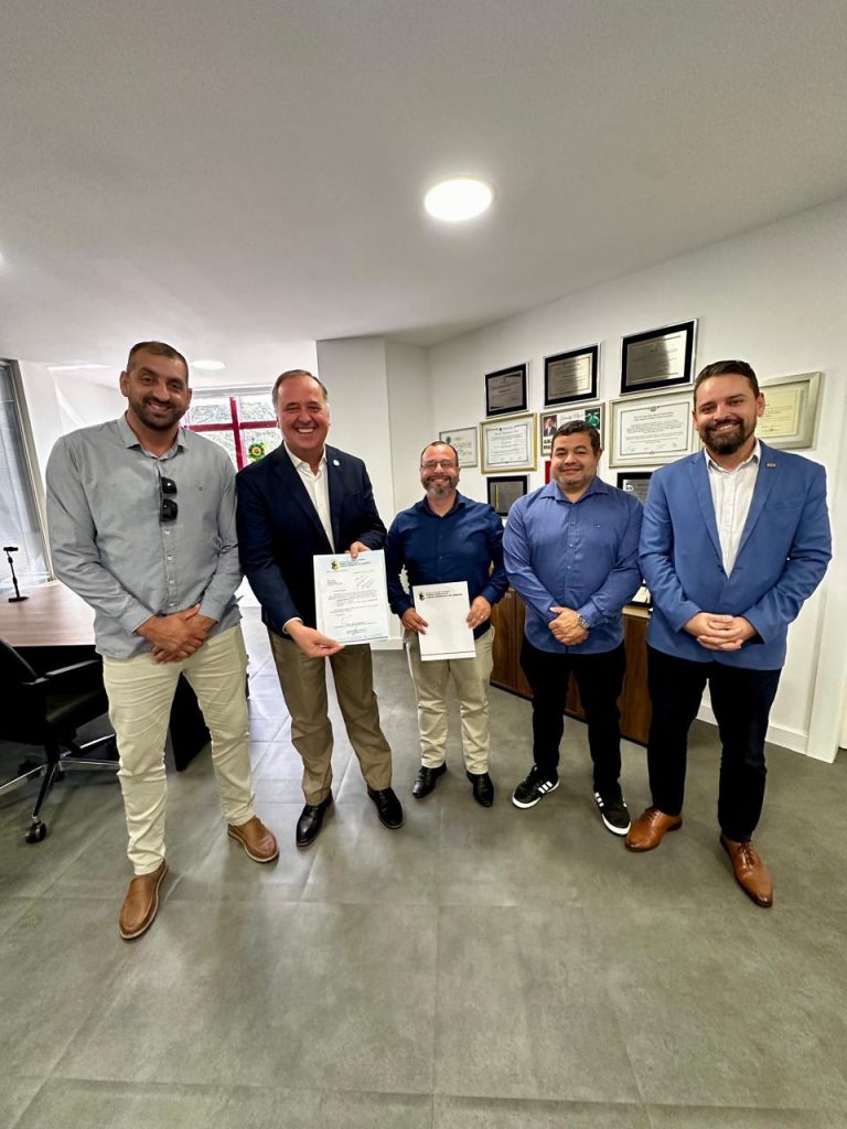 Um da após a abertura dos trabalhos legislativos, nesta terça-feira (4/2), o presidente Rafael da Silva – o Rafa (PL), o vereador Adriano Magrão (PL) e o diretor da Câmara Municipal de Sombrio, Dangelo da Silva, estiveram na Casa Civil de Santa Catarina, em Florianópolis. O assessor especial André Fernandes (coordenador regional do PL na AMESC) acompanhou a visita ao secretário chefe da Casa Civil, Kennedy Nunes.