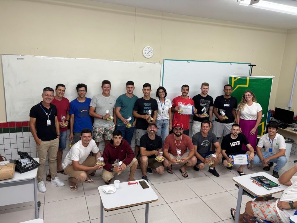 Nesta primeira aula do ano (03/02), os estudantes que se destacaram em 2024 com mais de 90% de frequência foram agraciados pela equipe técnica, recebendo uma lembrança pelo seu comprometimento e dedicação. Esse momento reforçou o quanto a disciplina e a persistência são essenciais para o sucesso acadêmico e profissional. Ainda, o aluno Eduardo Mendes recebeu o certificado de reconhecimento com 100% de frequência nas atividades.