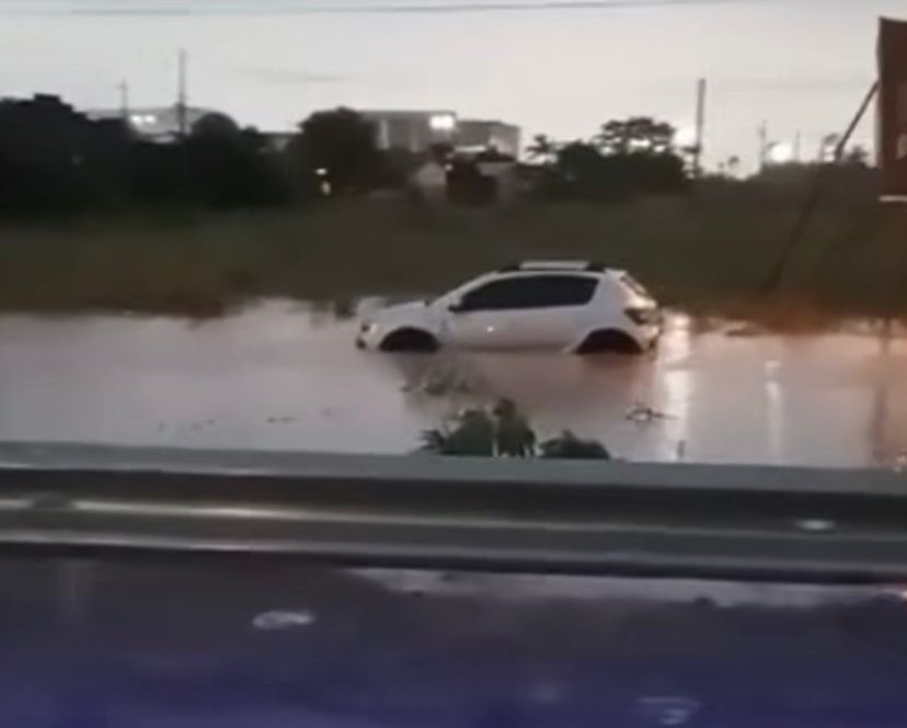 Um dos locais mais afetados foi o antigo traçado da BR-101, onde veículos ficaram parcialmente submersos na via lateral. Imagens registradas no momento mostram motoristas enfrentando dificuldades para atravessar a área alagada.