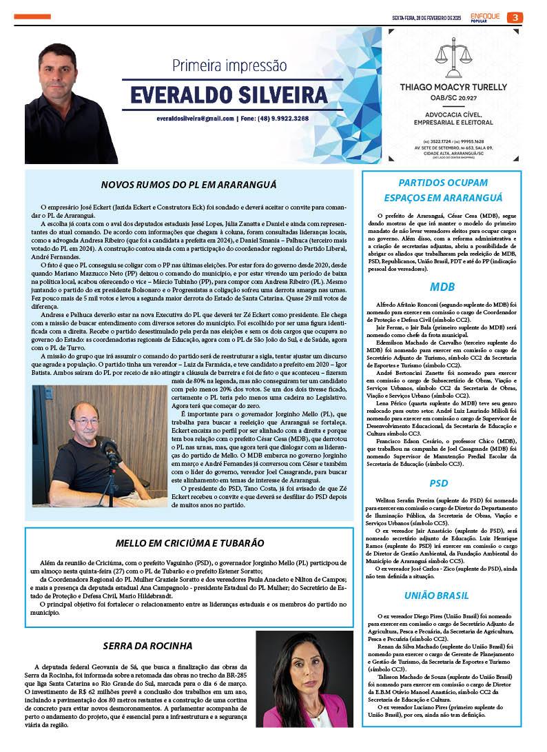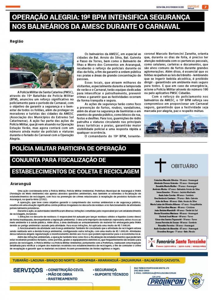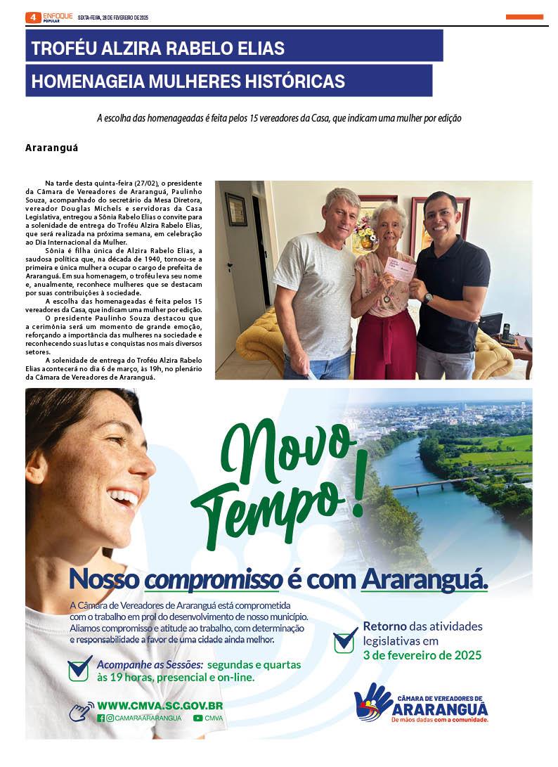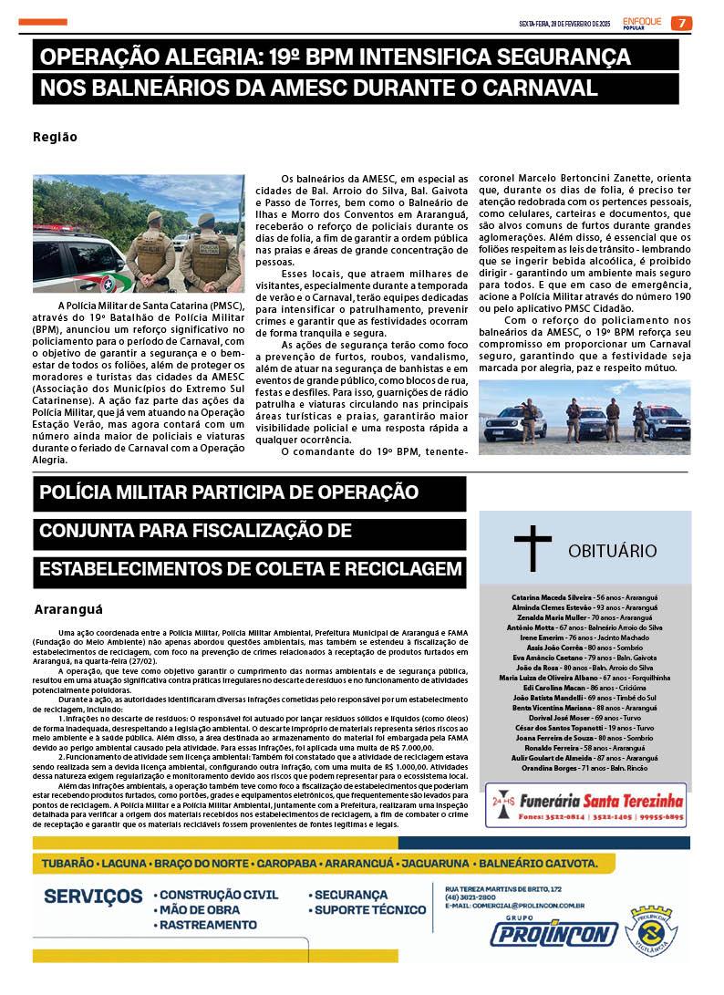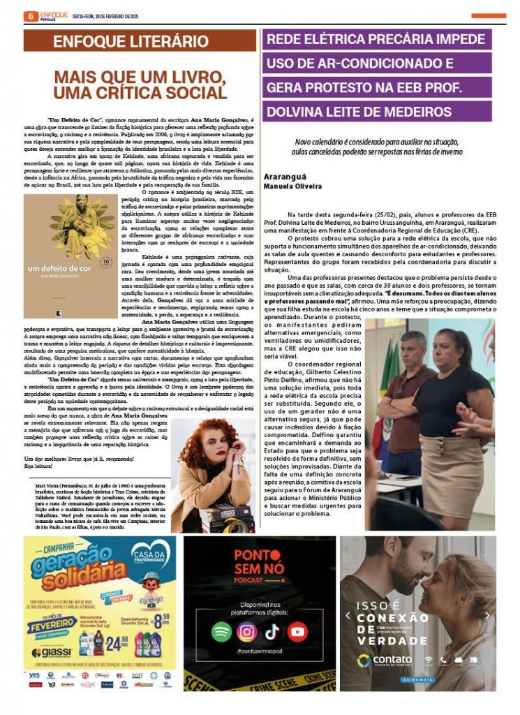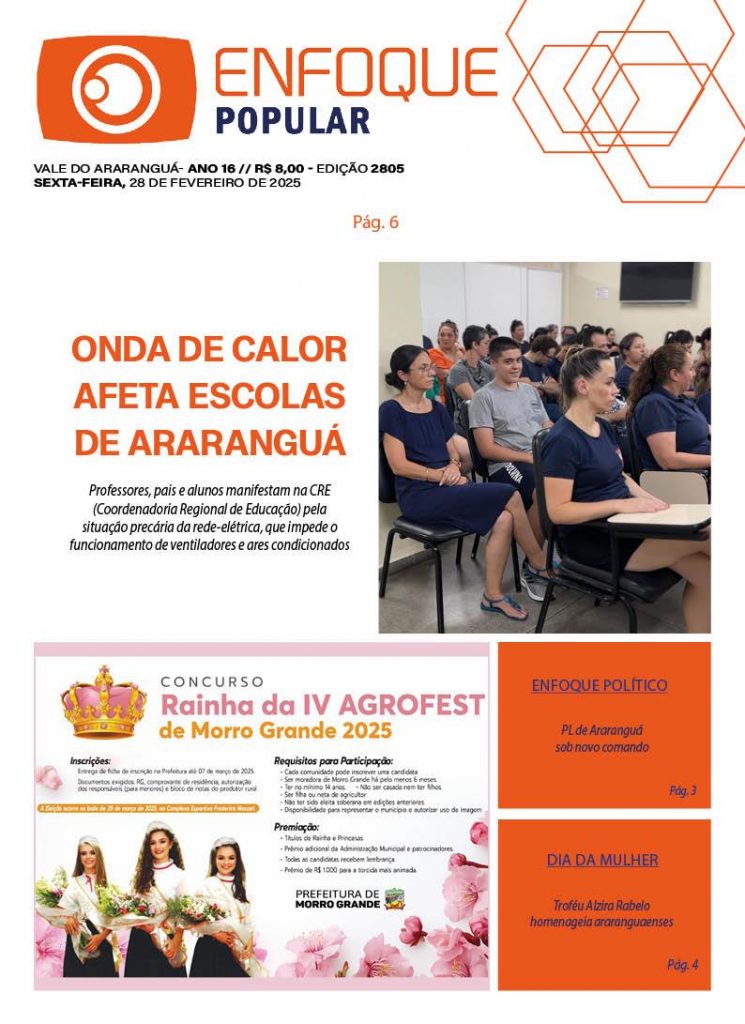 Jornal Enfoque Popular – Ed. 2805 – 28/02/2025 – onda de calor afeta escolas de Araranguá