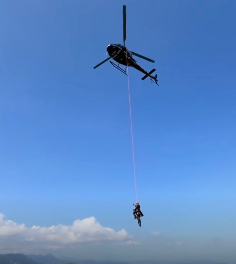 O corpo do homem foi retirado da área de difícil acesso com o auxílio de cabos de resgate em altura, pela aeronave, e transportado até um local seguro, onde aguardou a chegada do Instituto Médico Legal (IML).