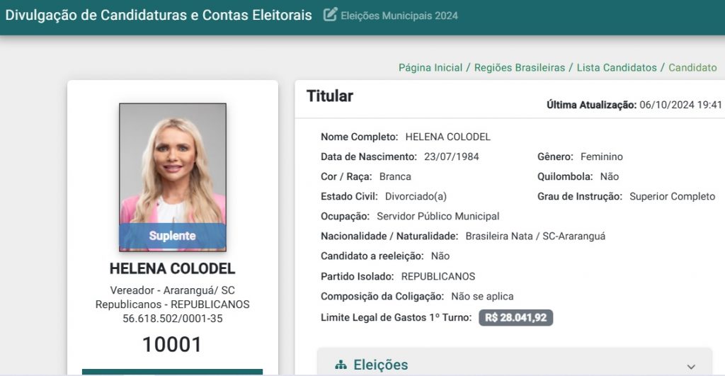 Já Helena Colodel, candidata do Republicanos e sobrinha do ex-prefeito de Timbé do Sul, Valentim Colodel (PP), fez apenas 5 votos, apesar de ter recebido R$ 4.897,25 para a campanha, dos quais gastou R$ 4.250. O valor equivale a R$ 850 por voto, gerando questionamentos sobre a efetividade da candidatura.