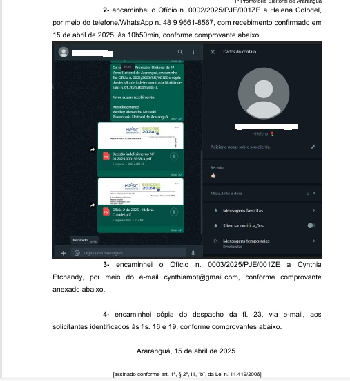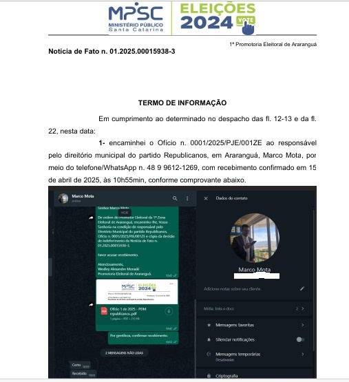 Uma denúncia de suposta fraude à cota de gênero nas eleições municipais de Araranguá, apresentada pela candidata Cynthia Etchandy (PL), foi arquivada pelo Ministério Público Eleitoral por ter sido apresentada fora do prazo legal. A Notícia de Fato nº 01.2025.00015938-3 foi protocolada no dia 7 de abril, oito dias atrás, pelo promotor eleitoral Rafael Fernandes Medeiros, mas não poderá seguir adiante na 1ª Promotoria Eleitoral.