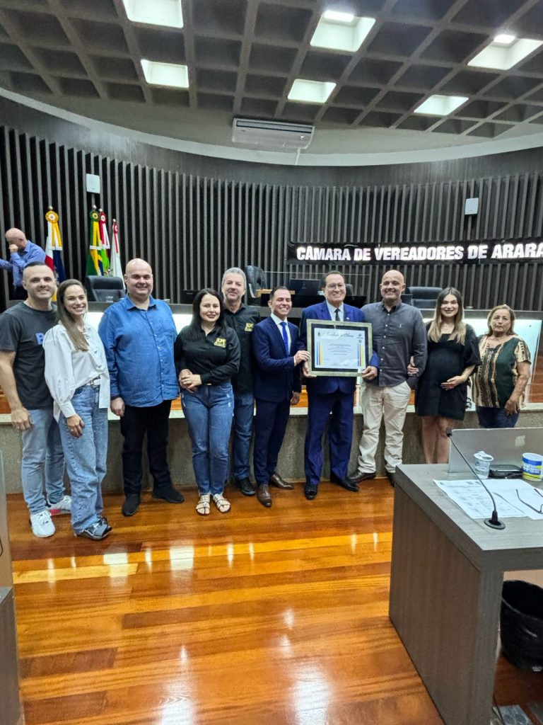 A Câmara de Vereadores de Araranguá aprovou, na noite desta quarta-feira (16), uma Moção de Reconhecimento à empresa AM Organizações e Promoções de Eventos Ltda — conhecida como AM Formaturas — em celebração aos seus 23 anos de contribuição para o desenvolvimento econômico, cultural e social da região. A homenagem, proposta pelo vereador Douglas Michels, foi entregue ao fundador Antônio João Pereira, o “Tonhão”, que também celebrou aniversário na mesma data.