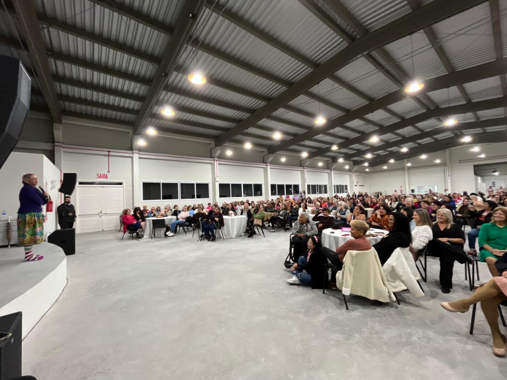 Um momento de alegria e reconhecimento marcou a noite das 485 integrantes dos Clubes de Mães de Balneário Arroio do Silva. Realizado no Centro Multiuso Esther Pacheco Mucillo, o evento trouxe humor e emoção com o show da Dona Maricotinha, encantando o público com histórias bem-humoradas. A celebração, organizada pela Prefeitura e Secretaria de Desenvolvimento Social, homenageou o papel criativo e dedicado dessas mulheres, encerrando com um jantar especial. A ação fortalece os vínculos e valoriza quem transforma linhas em arte com amor e dedicação.