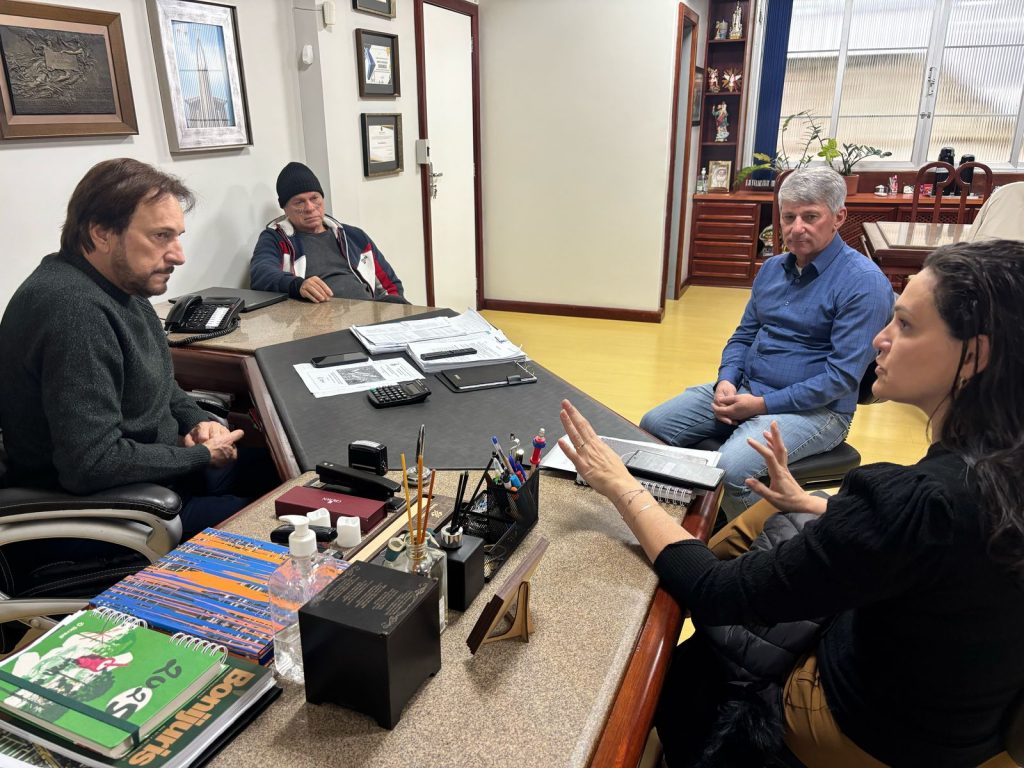 O prefeito de Araranguá, César Cesa, recebeu em seu gabinete representantes do Legislativo para discutir avanços nas políticas públicas voltadas ao bem-estar animal no município. Participaram da reunião o presidente da Câmara de Vereadores, Paulinho Souza, o vereador Jorge Ghiraldo – presidente da Comissão de Estudos à Causa Animal –, e a secretária municipal de Saúde, Daiane Biff.