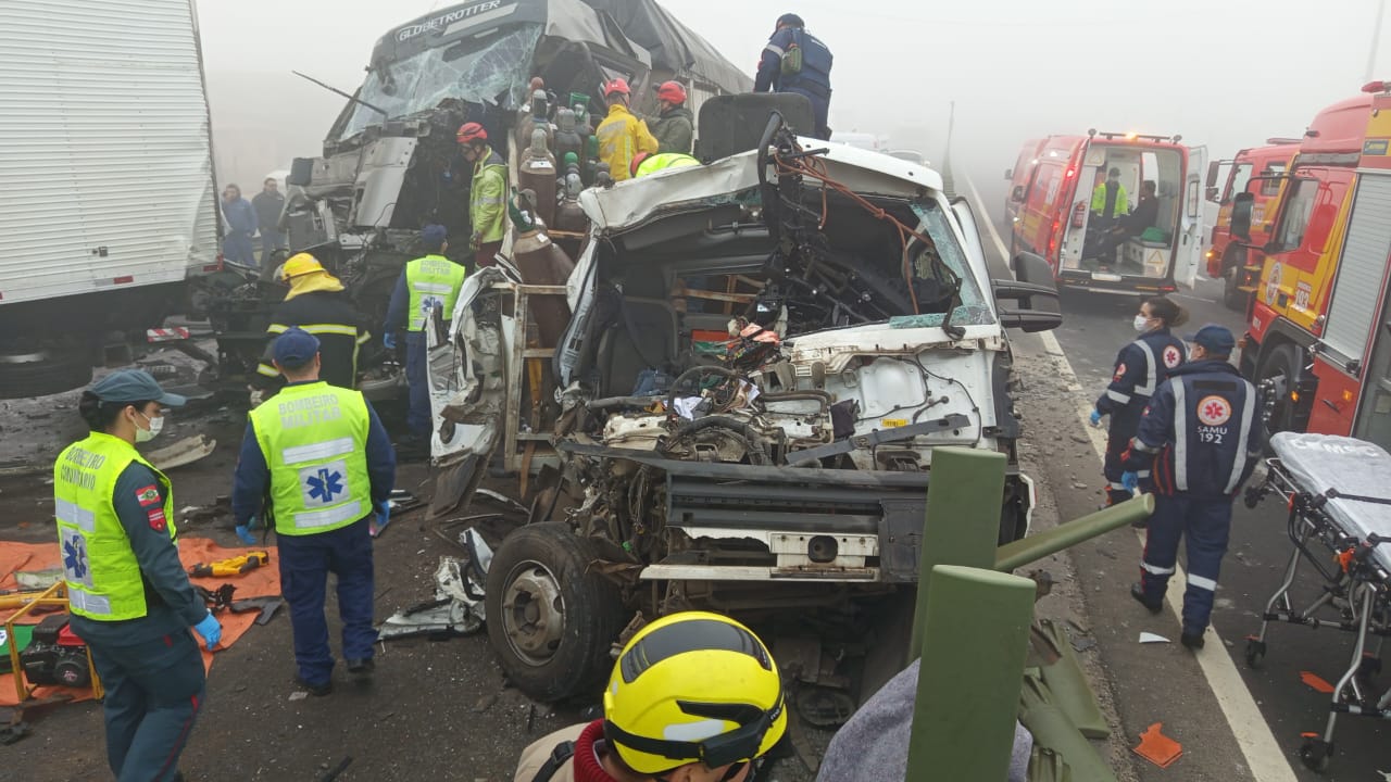 Um grave acidente de trânsito mobilizou diversas equipes de resgate na manhã desta terça-feira (15), por volta das 7h38, na altura do bairro Garganta, em Sangão, na BR-101. O Corpo de Bombeiros Militar de Santa Catarina (CBMSC) foi acionado para atender um engavetamento envolvendo quatro caminhões e outros veículos de