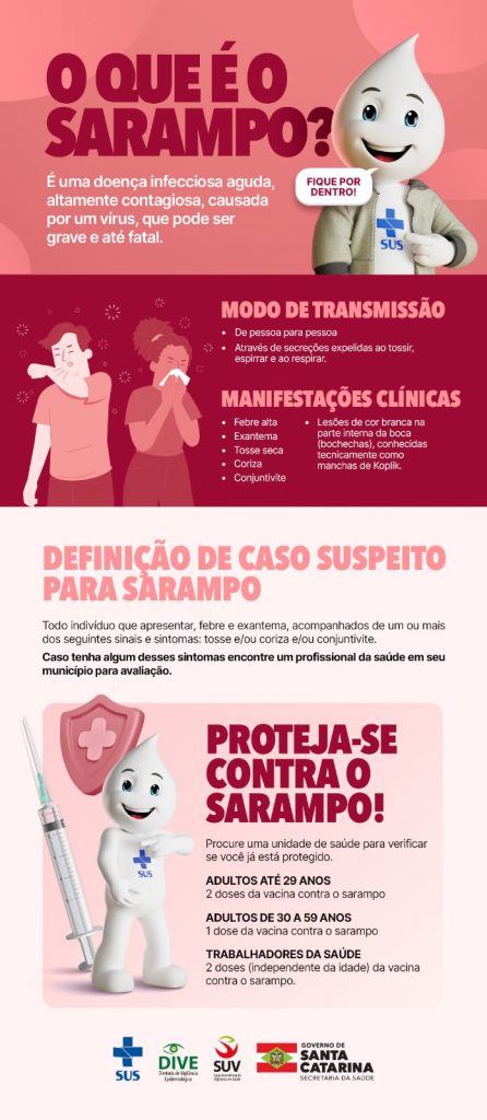 Entre agosto e dezembro de 2025, o Estado de Santa Catarina realizará uma campanha de busca ativa para vacinação contra o sarampo, com foco mensal em públicos prioritários. A Secretaria Municipal de Saúde de Araranguá reforça o alerta para a importância da imunização, especialmente diante do aumento de casos em vários países das Américas.