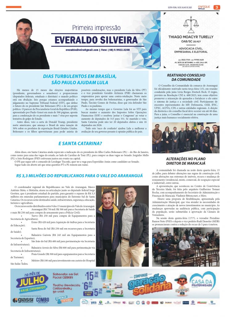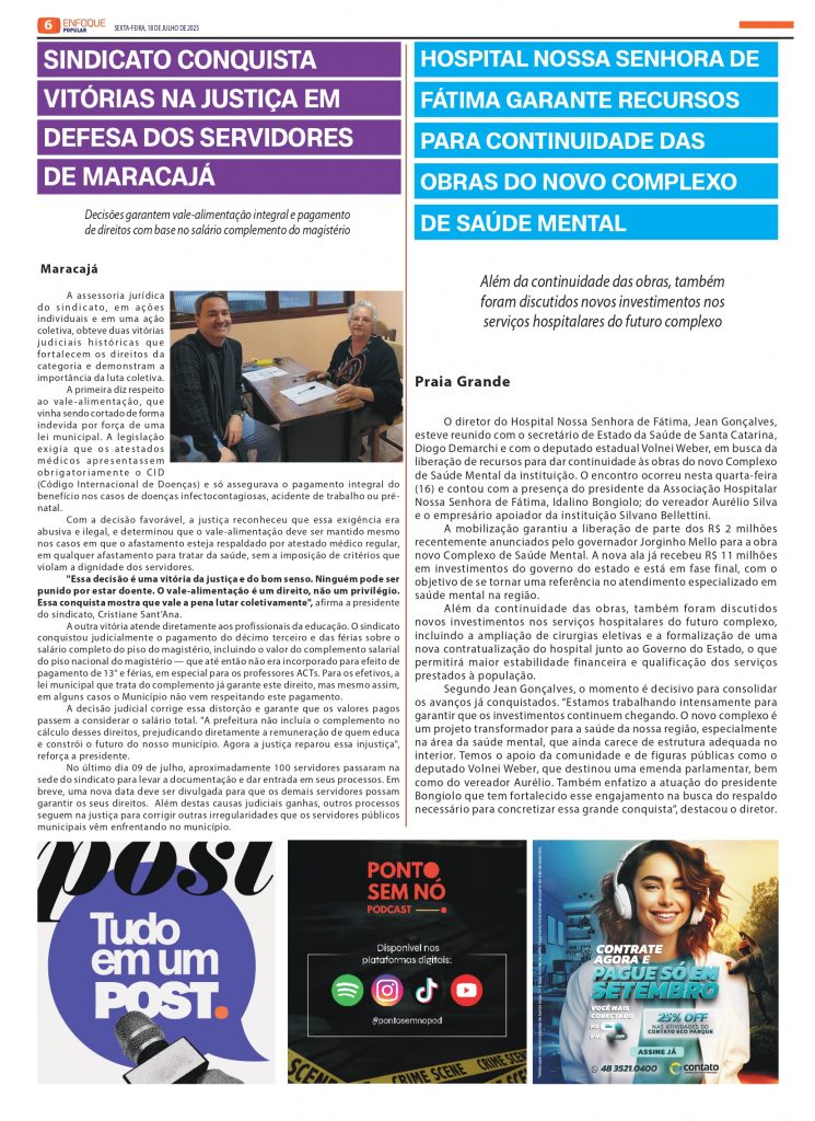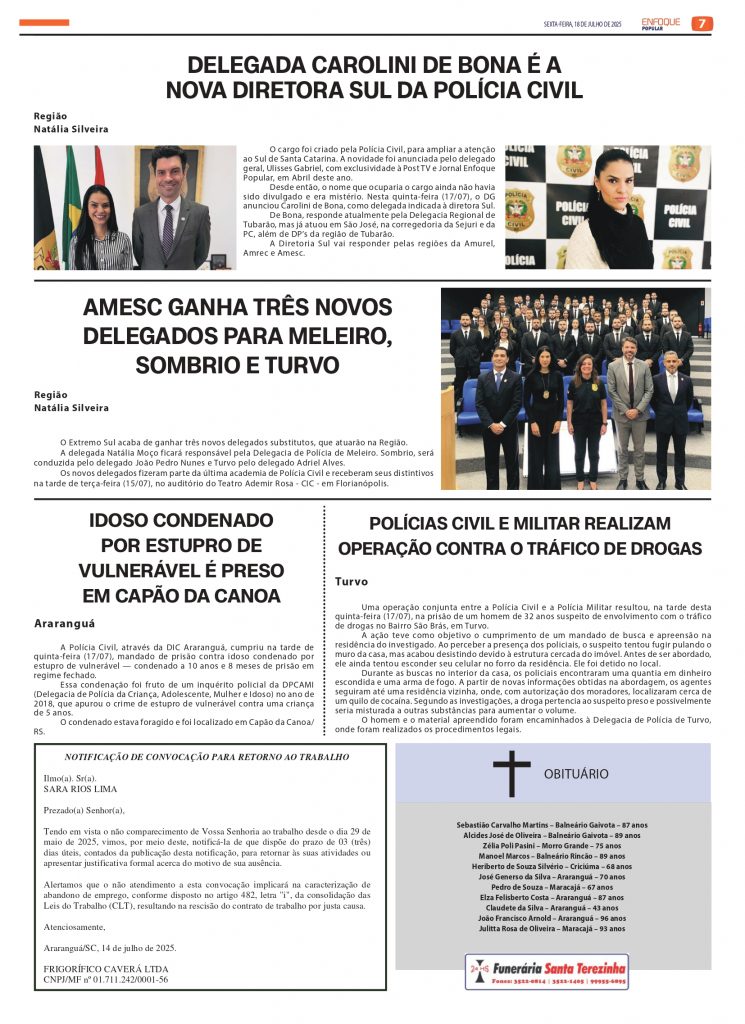 Jornal Enfoque Popular – Edição 2825 – Diretoria Sul da PCSC tem um nome
