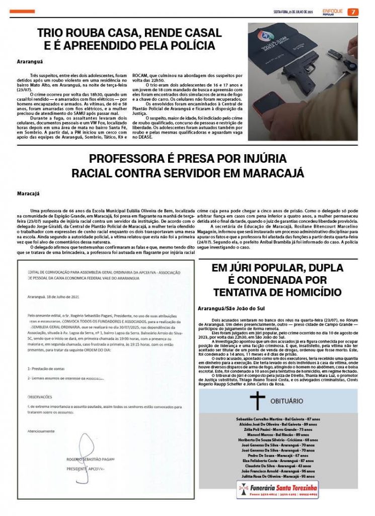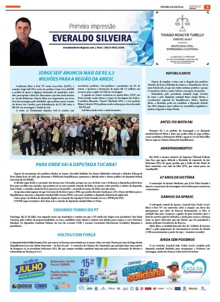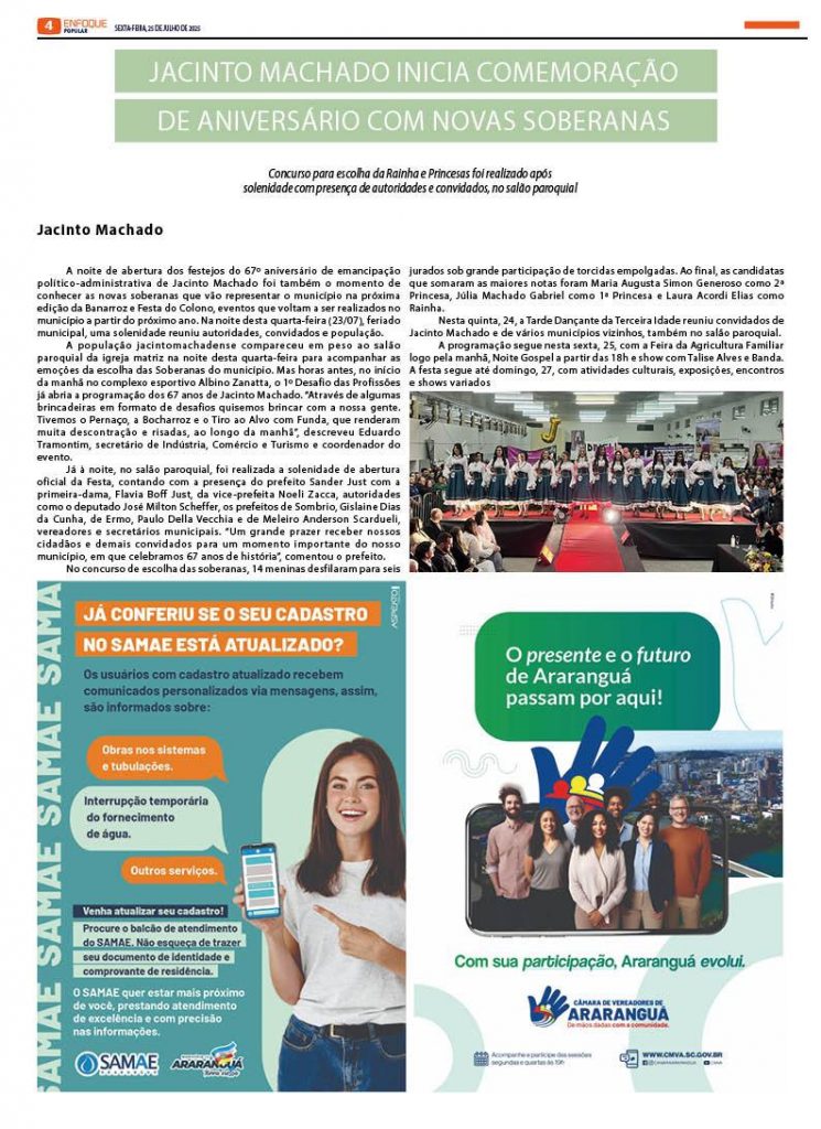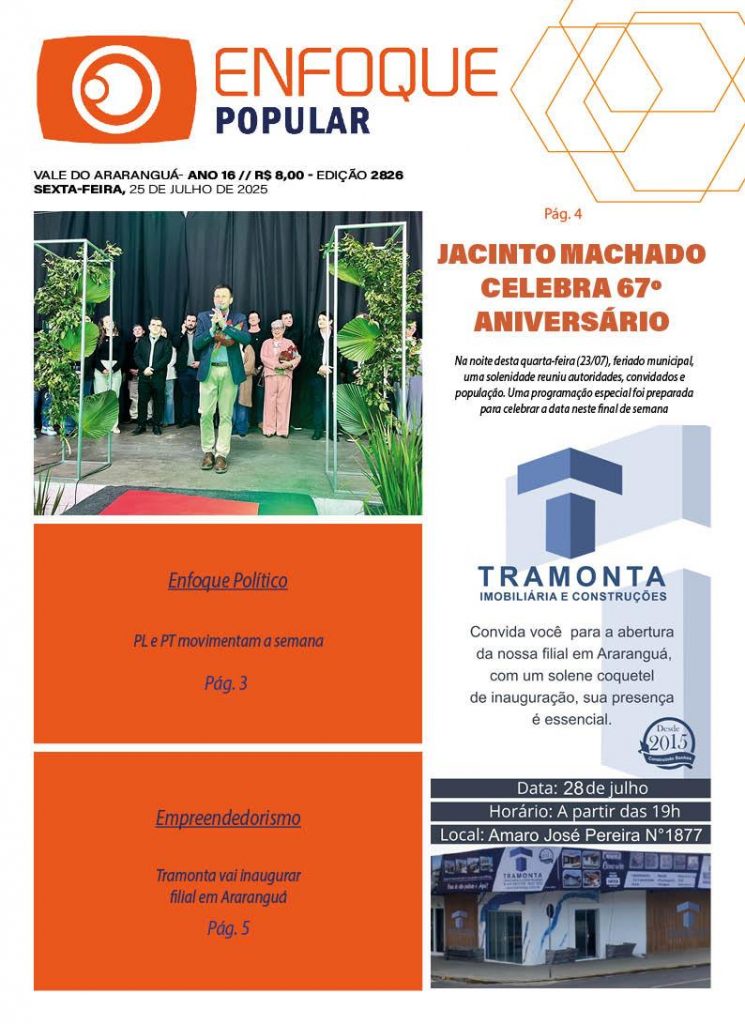 Jornal Enfoque Popular – Edição 2826 – Jacinto Machado celebra 67º aniversário